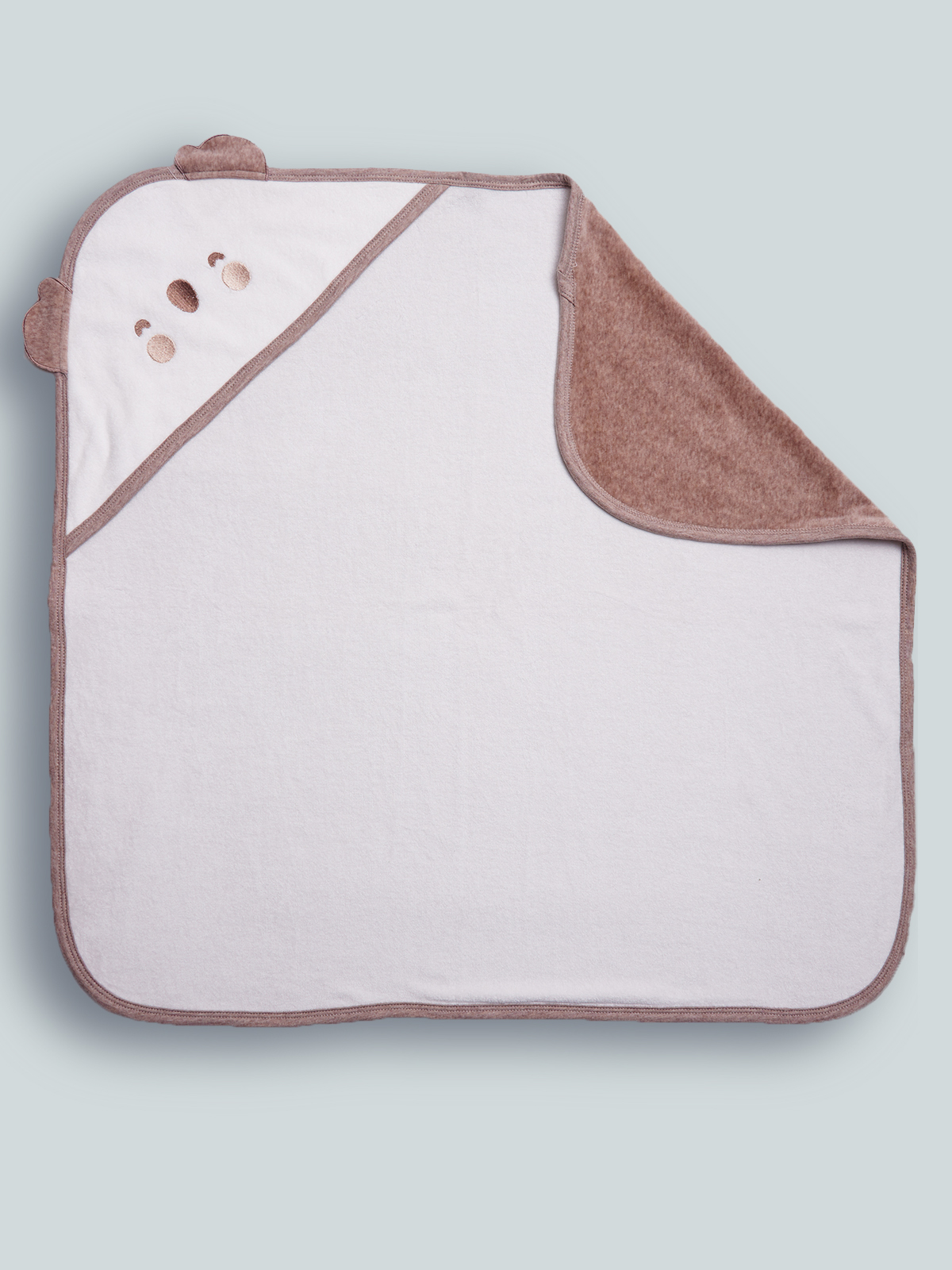 Avvolgente asciugamano con la quale potrai asciugare il tuo neonato dopo il bagnetto. Tessuto spugna 100% cotone. Elemento decorativo: stampa Musetto e orecchie 3D. Questo accessorio fa parte del corredino composto da tutti gli articoli indispensabili per il tuo neonato.