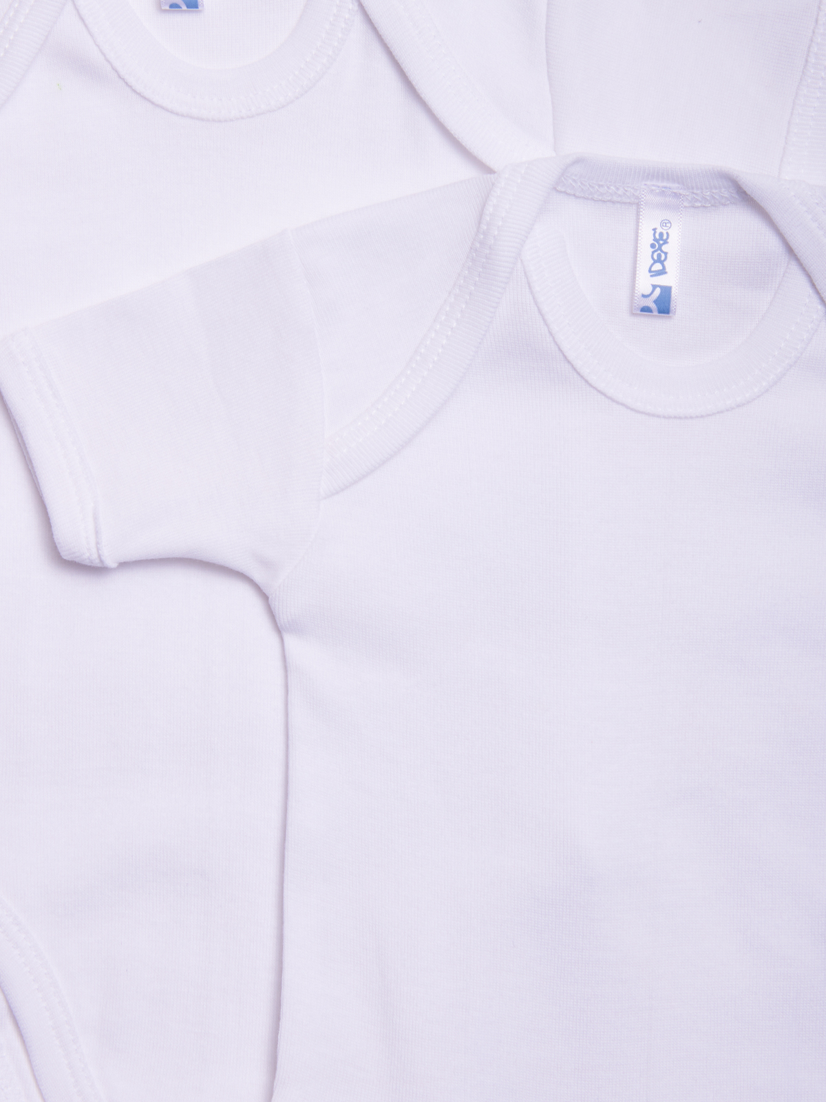 Set composto da due body in costina di cotone, scollo all’americana. Apertura al cavallo e su spalla con pratici bottoncini a pressione. La confezione comprende due body in tinta unita.