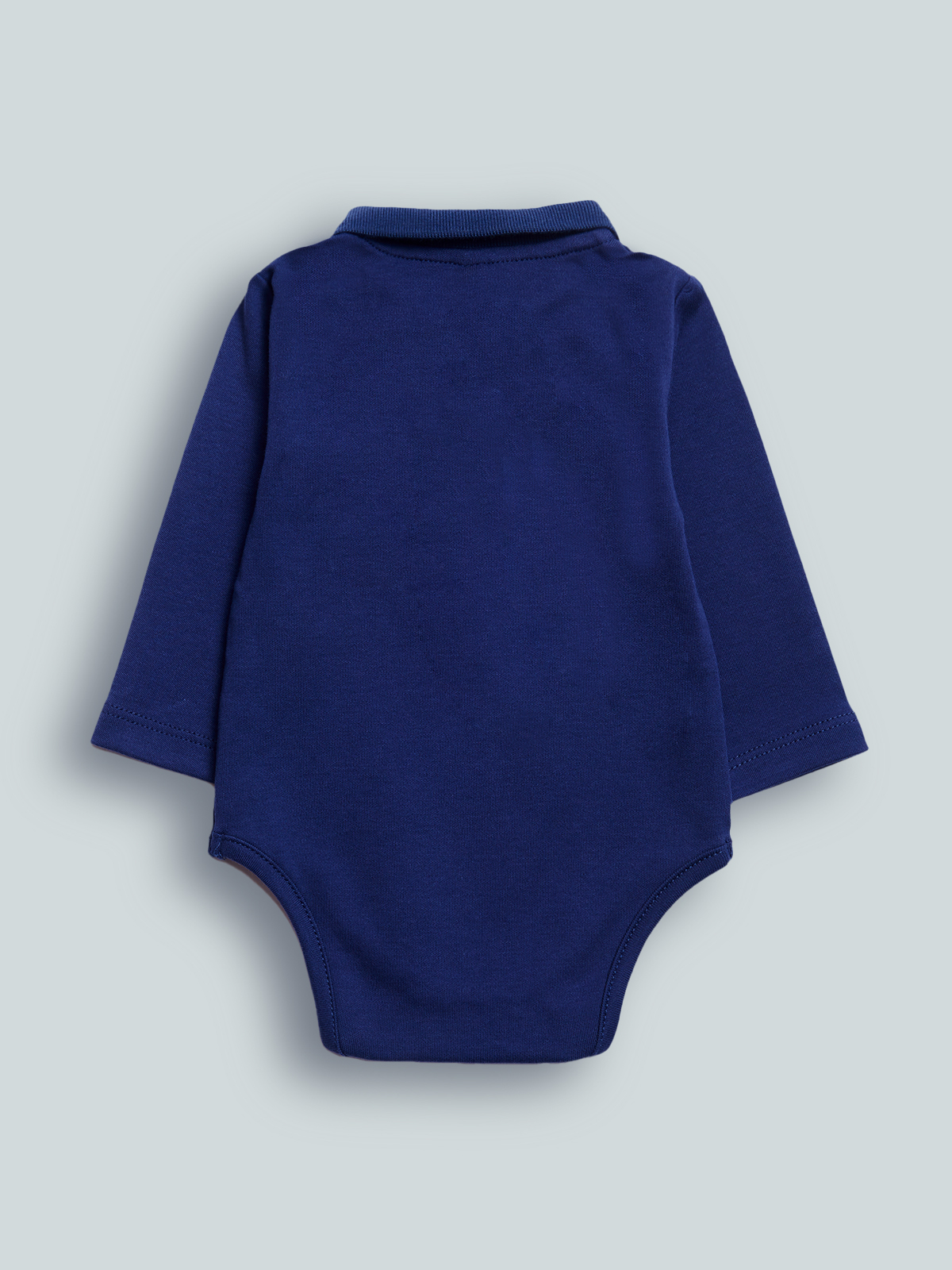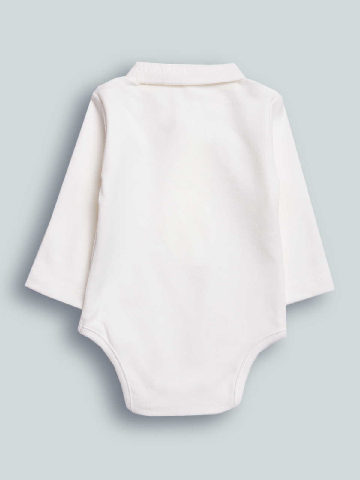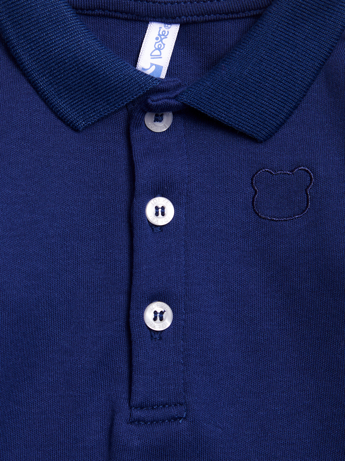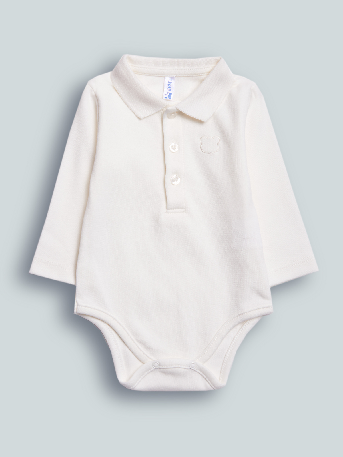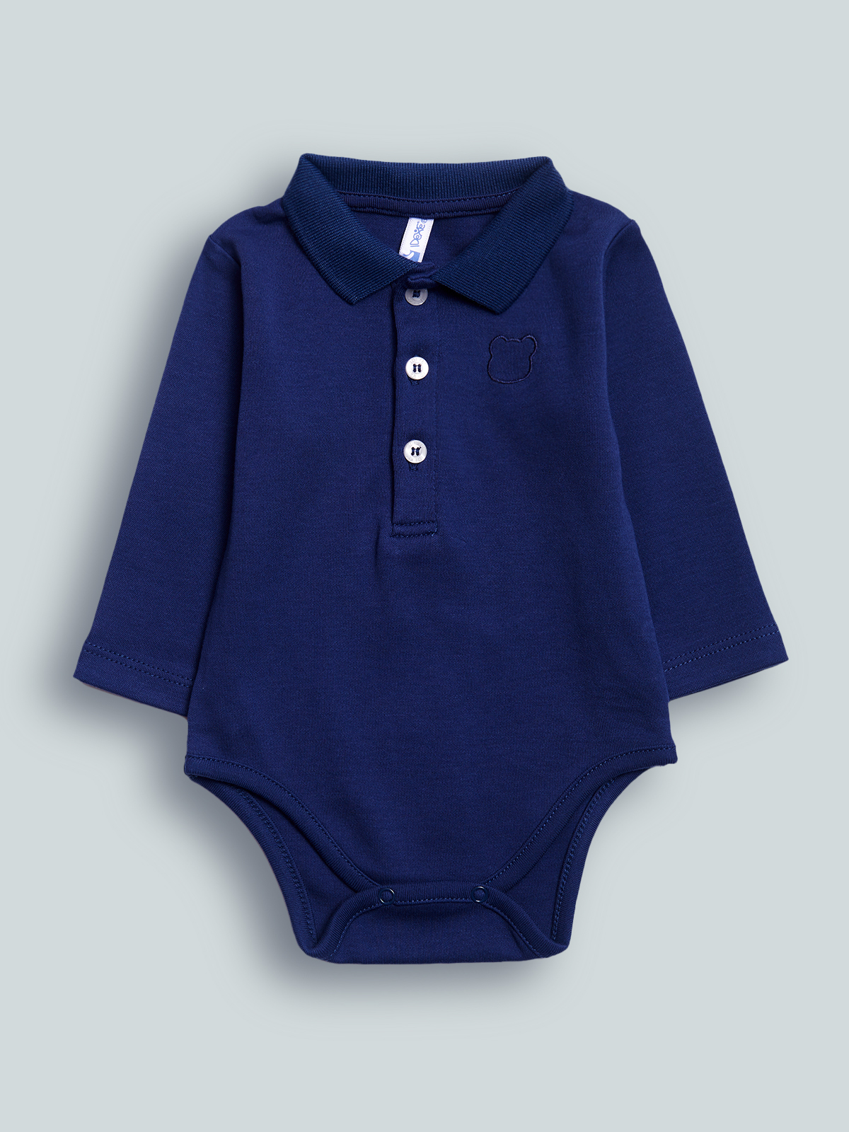 Body stile polo a Manica lunga in caldo cotone. Colletto classico, apertura parziale con bottoni frontali, bottoncini automatici sul cavallo, ricamo su petto. Stile casual in versione baby.