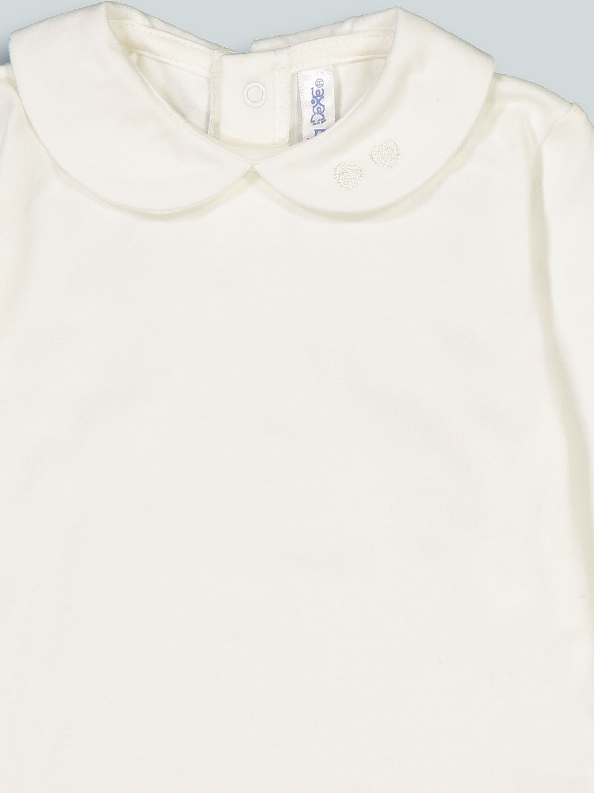 Body caldo cotone elasticizzato, collo rotondo, apertura sul dietro ed entrogamba con bottoncini a pressione per facilitarne l’indosso. Capo essenziale per ogni tipo di look.