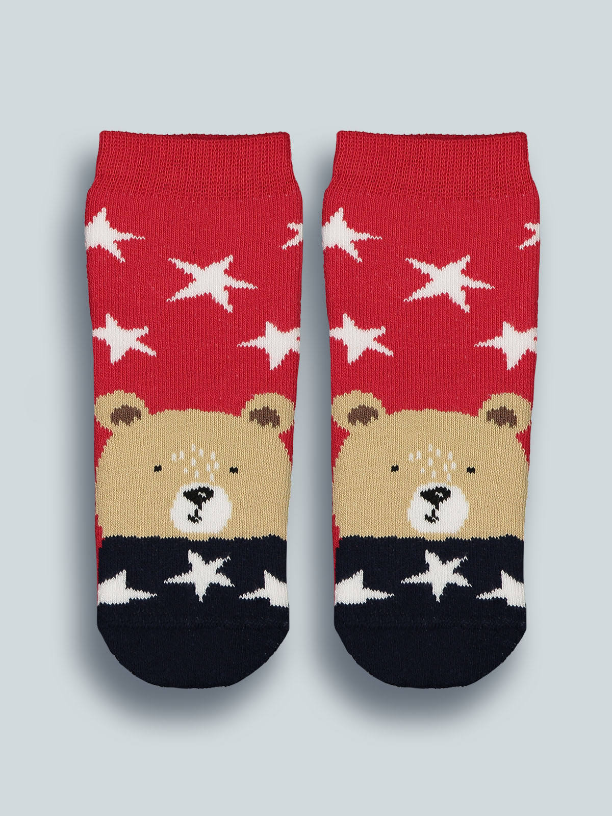Calze antiscivolo in spugna con tenero orsetto. Stelle in gomma antiscivolo sulla pianta del piede permettono al vostro bambino di scorrazzare per casa in piena libertà. Un’idea regalo perfetta per il Natale.