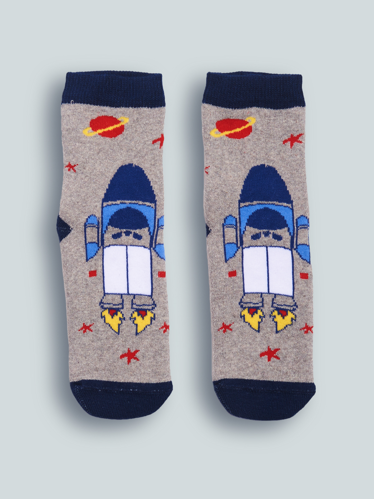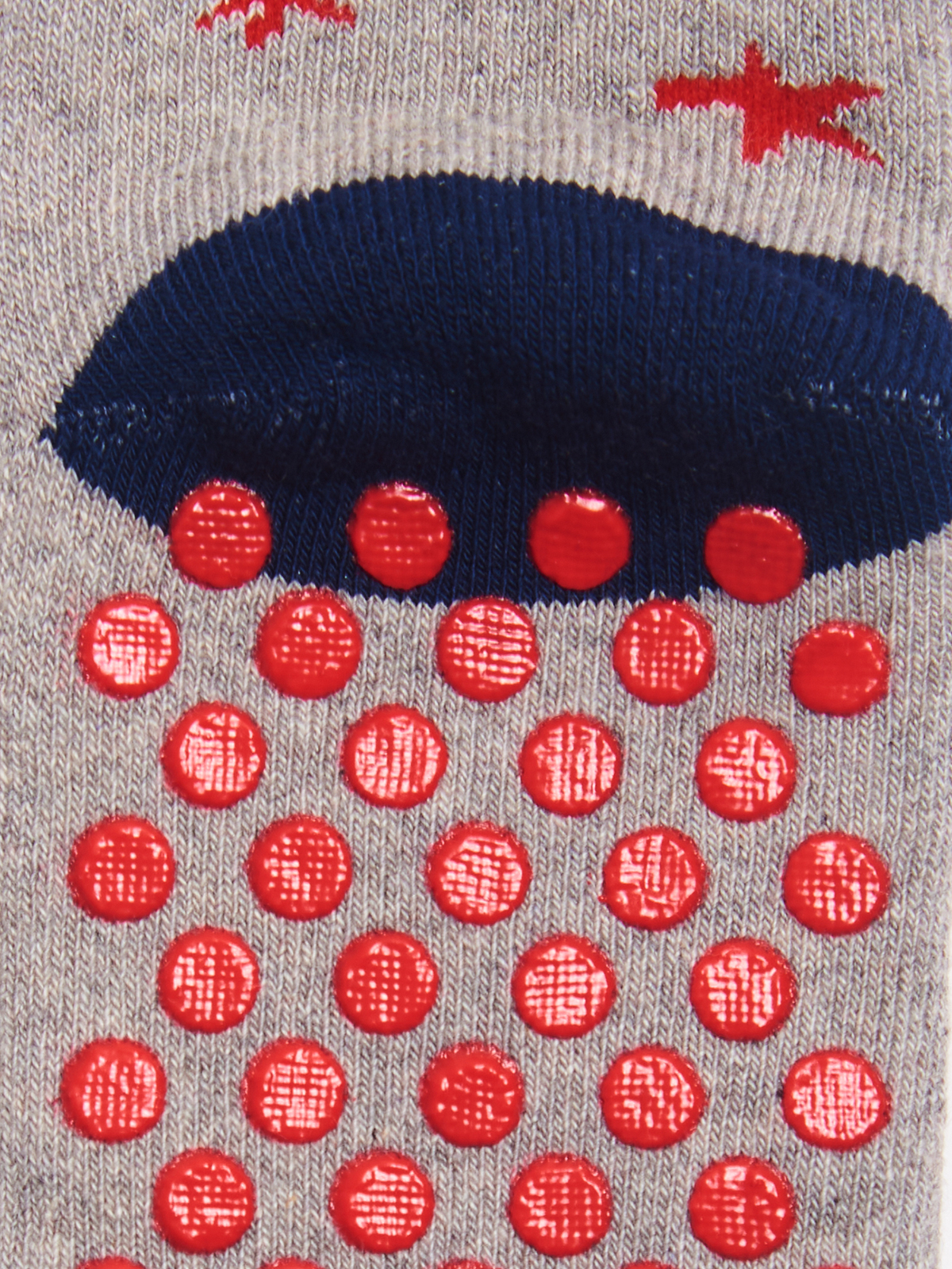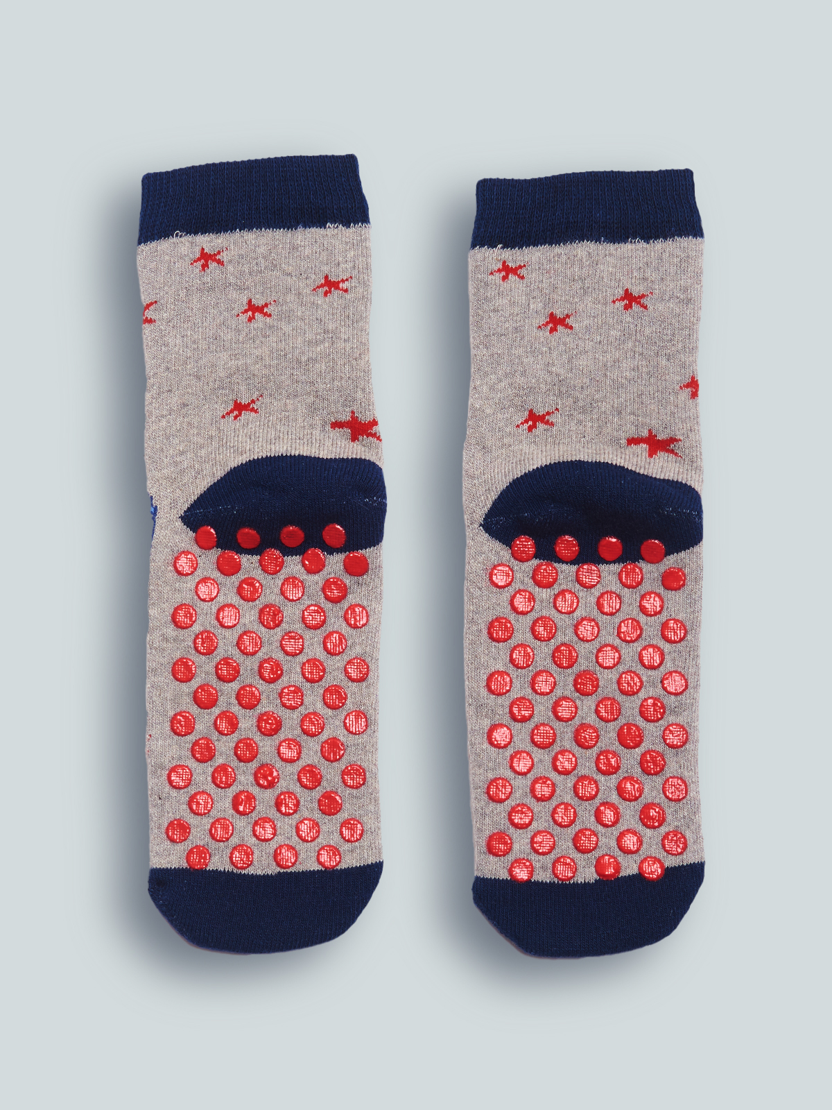 Calze antiscivolo in spugna Melange con navicella spaziale. Pallini in gomma antiscivolo sulla pianta del piede. Perfette da indossare in casa al posto delle pantofole.