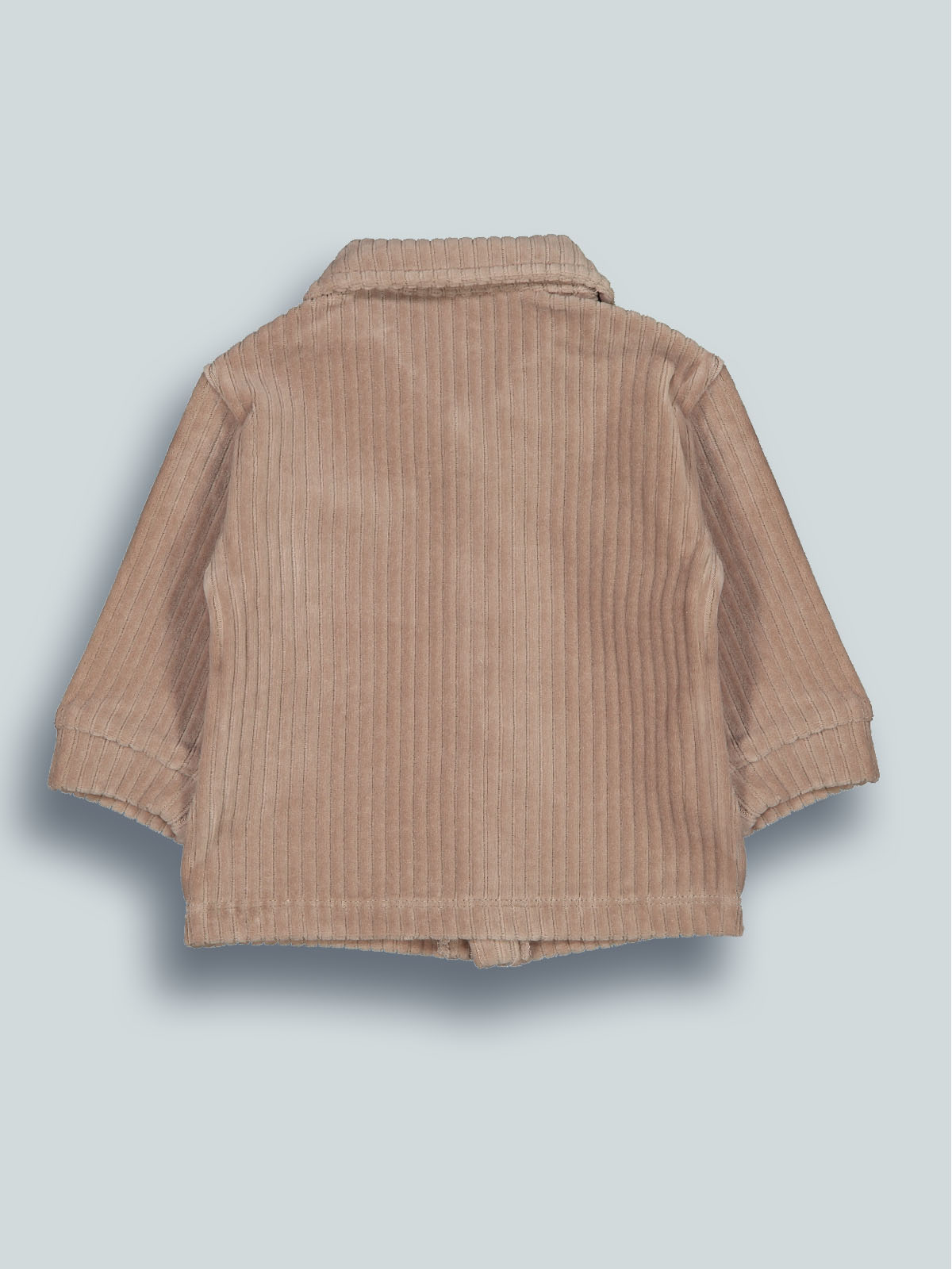 Camicia modello oversize con spalla scesa, ciniglia a coste larga. Abbottonatura frontale con bottoni a pressione. Tasca applicata sul petto. Un “must have” che non può mancare nell’armadio dei vostri neonati.