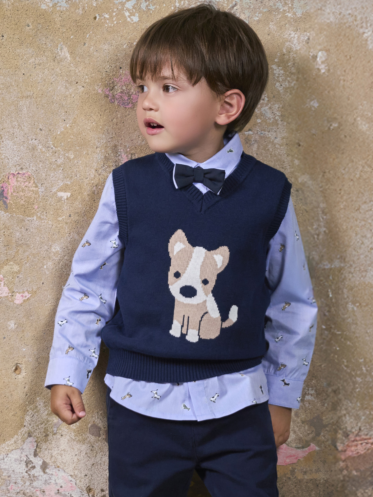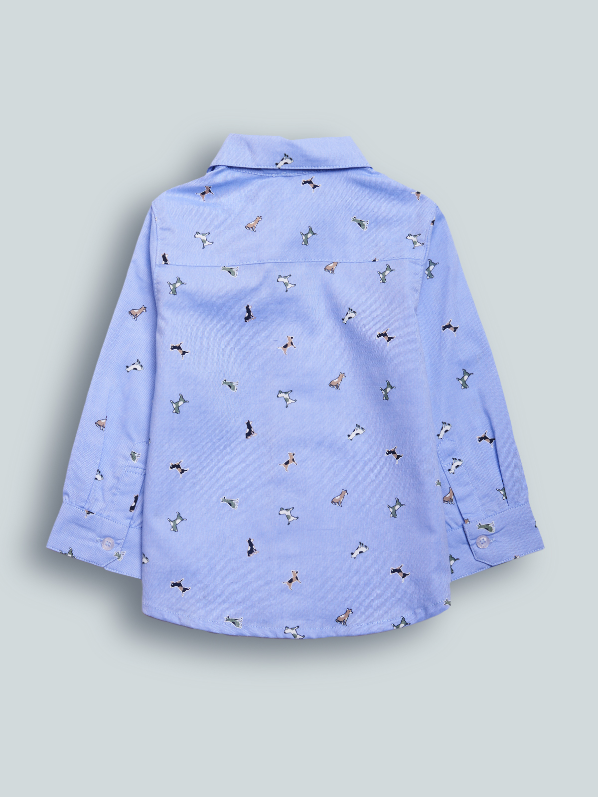 Camicia elegante a Manica lunga in oxford azzurro fantasia. Apertura davanti e polsini con bottoni effetto Madreperla. Papillon removibile e regolabile incluso, per un look in perfetto stile dandy.
