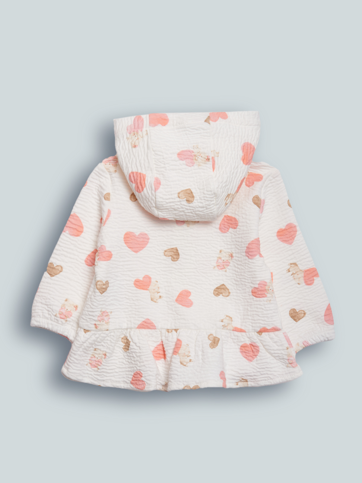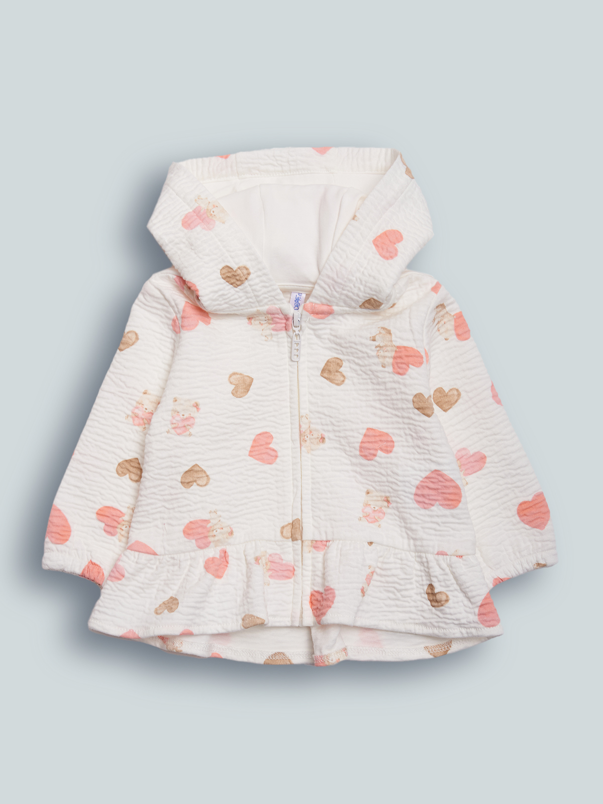 Cardigan in Morbida Maglia goffrata elasticizzata stampata. Comoda apertura con zip e cursore personalizzato. Balzina sul fondo per look femminile. Confortevole, versatile e spiritosa da usare in tutte le occasioni!