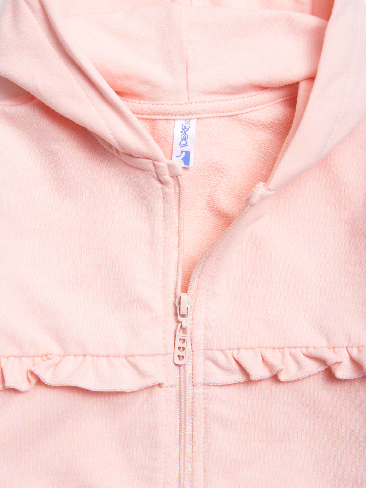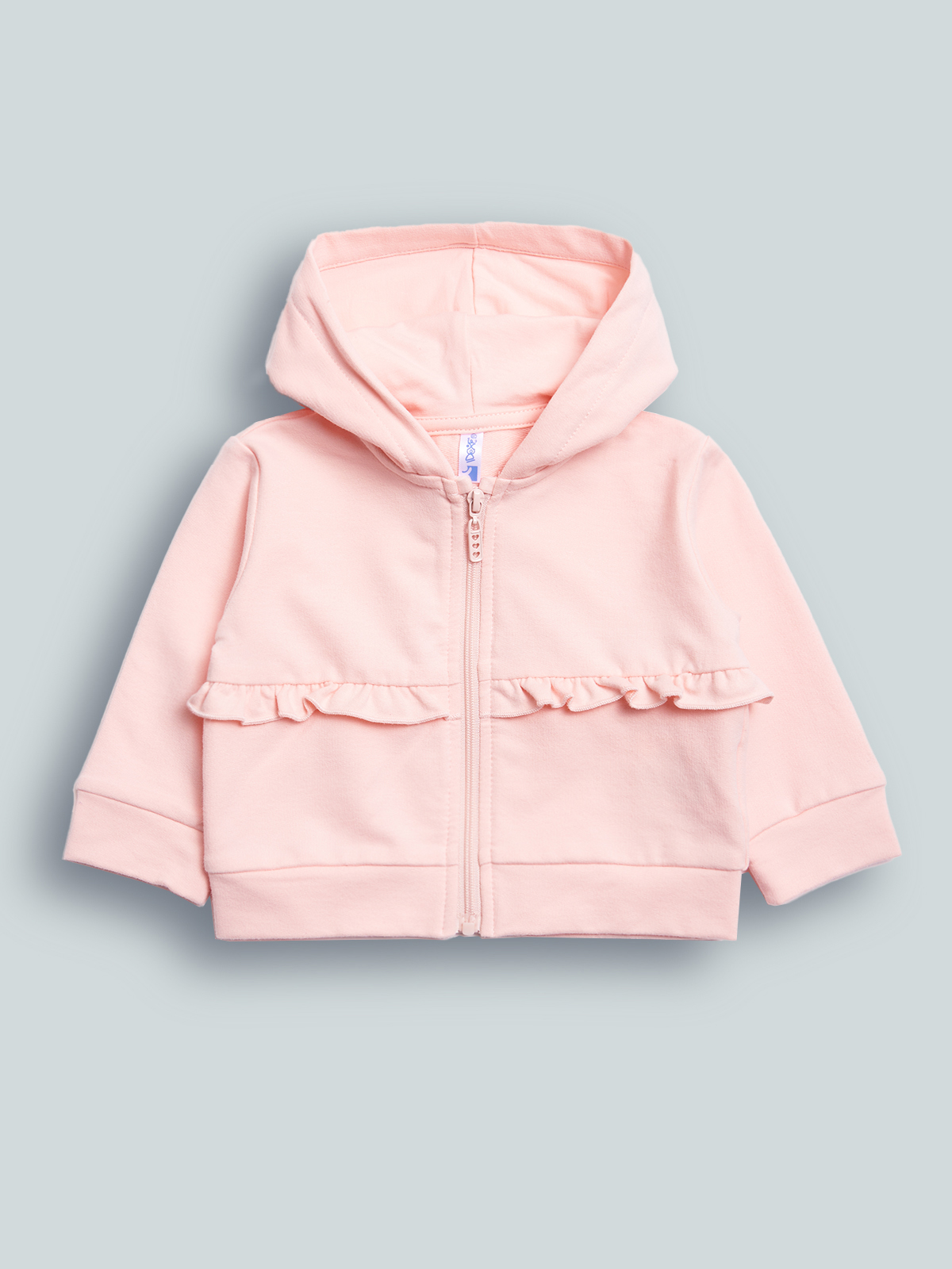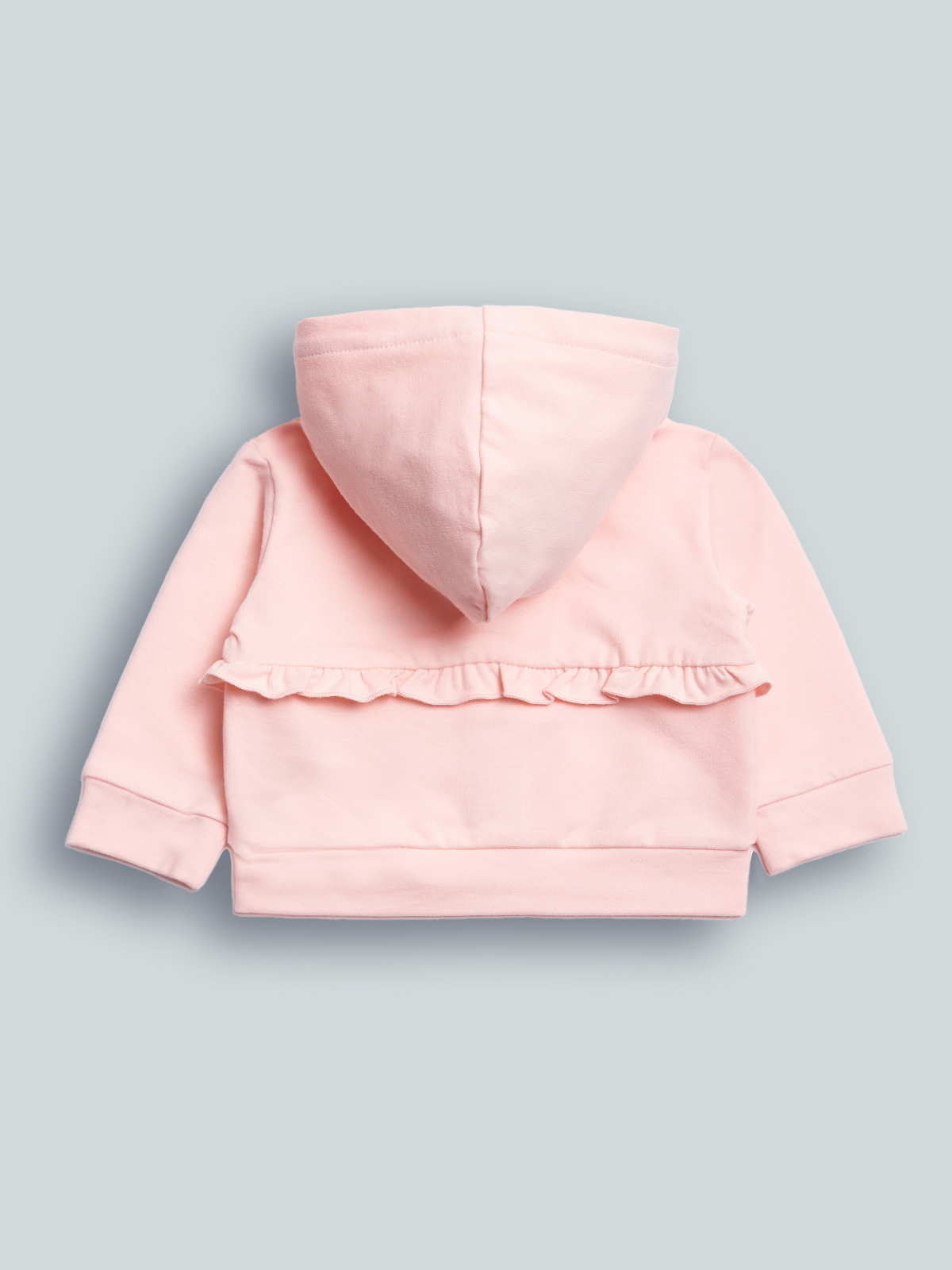 Cardigan in felpa leggera elasticizzata, dotato di cappuccio e pratica apertura con zip e cursore personalizzato. Deliziose rouches completano questo Must-have del guardaroba, di facile abbinamento con tutti i nostri capi della collezione!