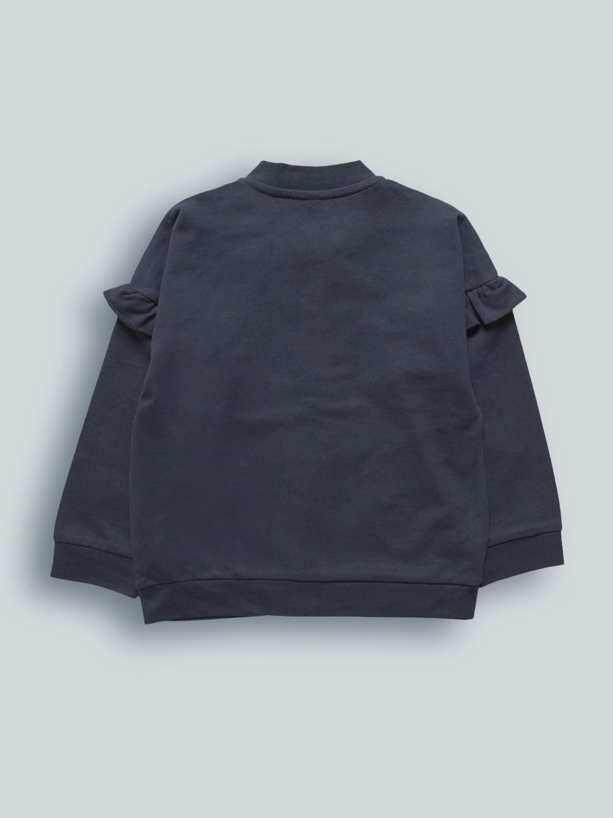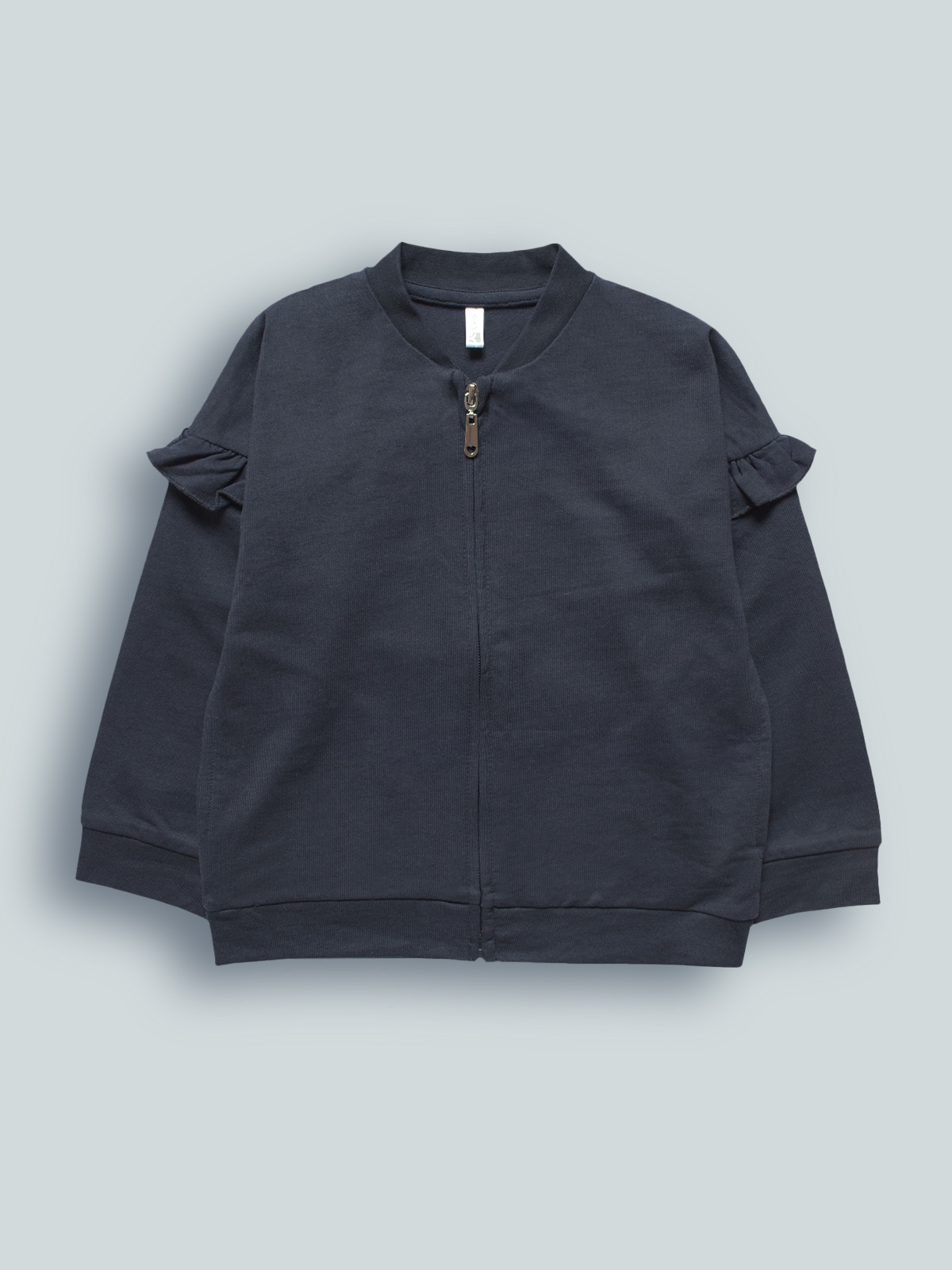Cardigan in morbida felpa leggera con collo in costina, dettaglio di rouches su manica lunga. Apertura zip frontale con cursore argento. Perfetto per essere trendy e comfort allo stesso tempo.