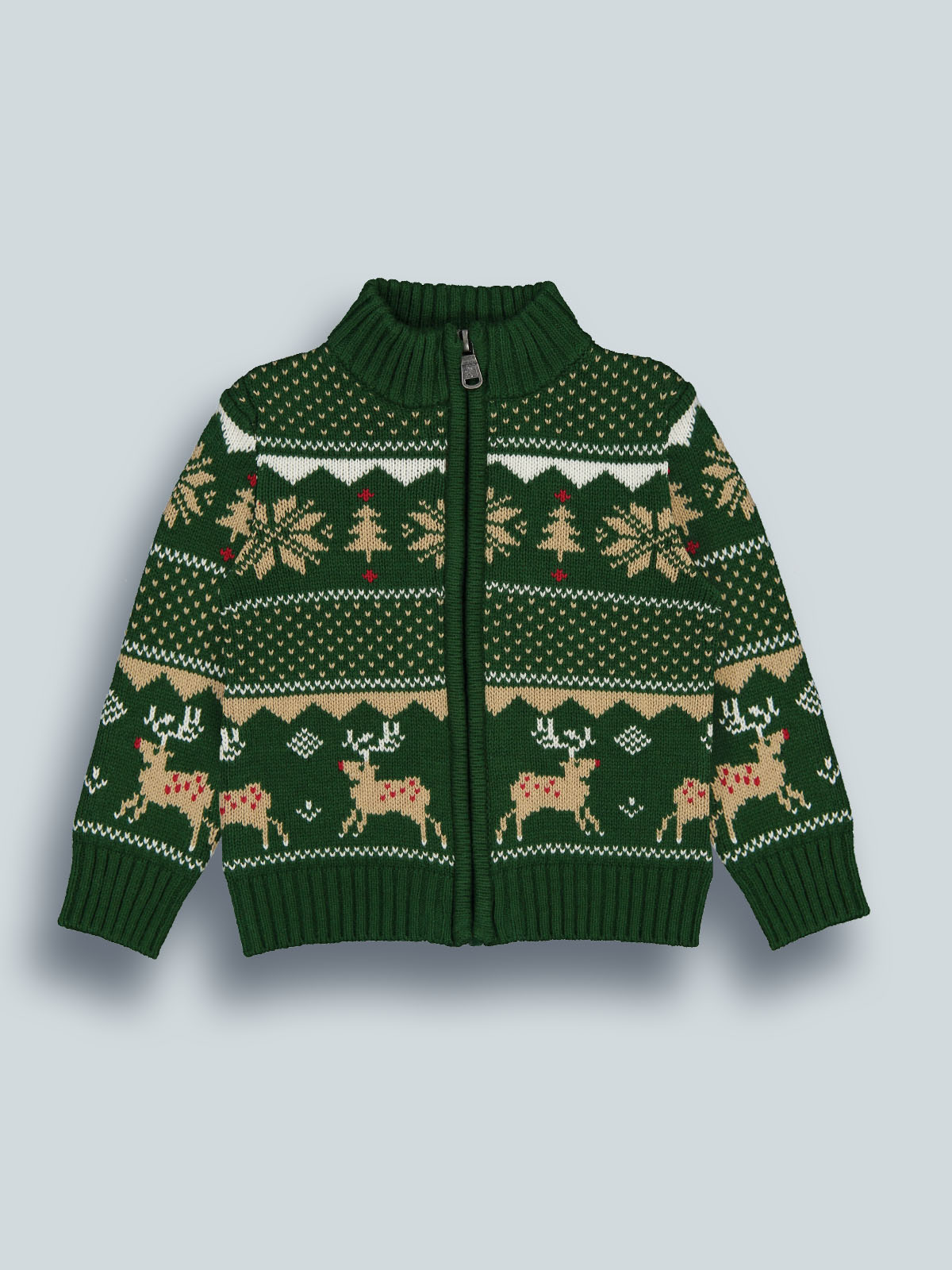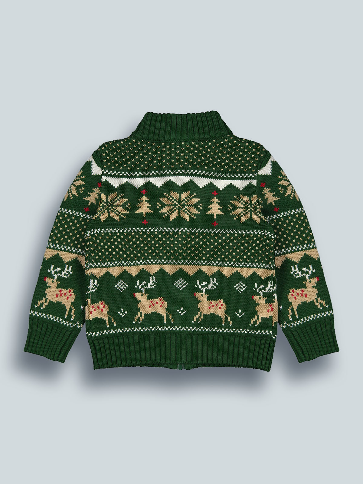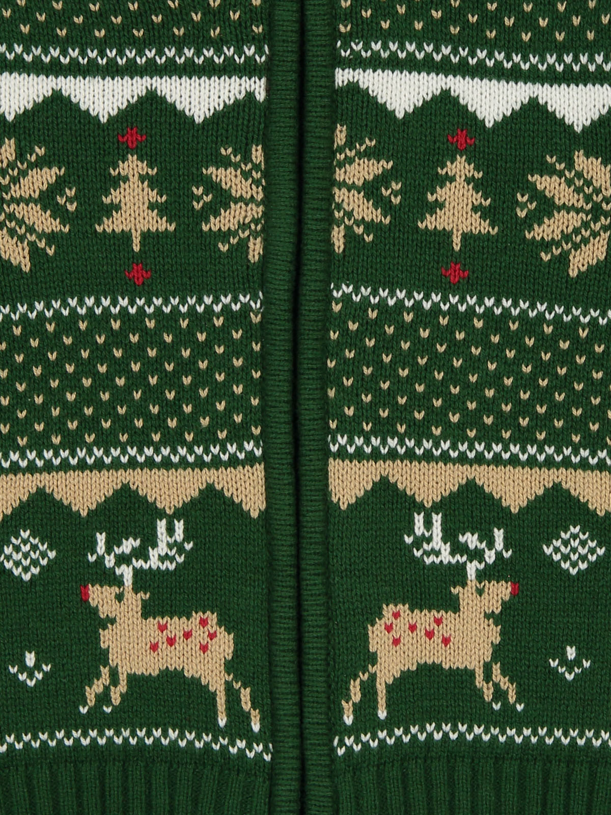 Cardigan in morbido e caldo tricot con fantasia jacquard che richiama l’atmosfera del Natale. Collo alto, apertura davanti con pratica lampo. Un capo “must have” per le feste natalizie.