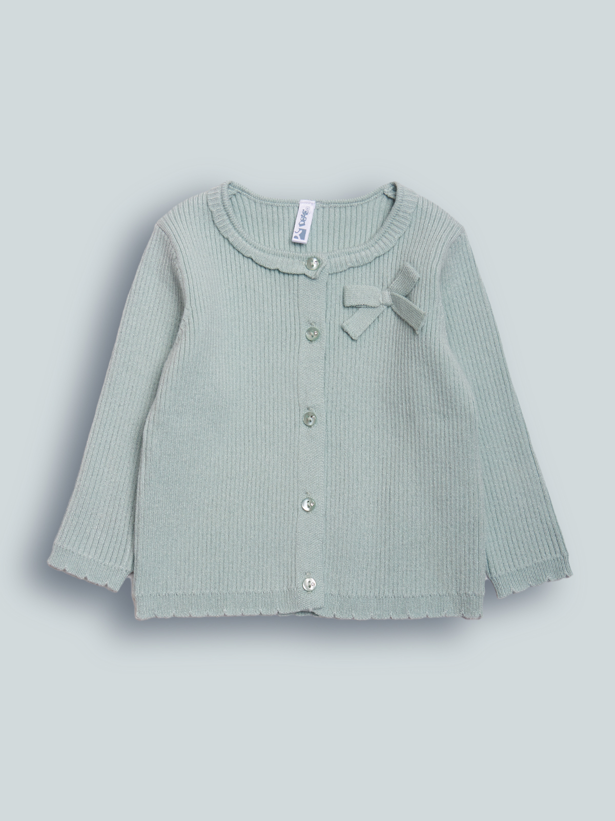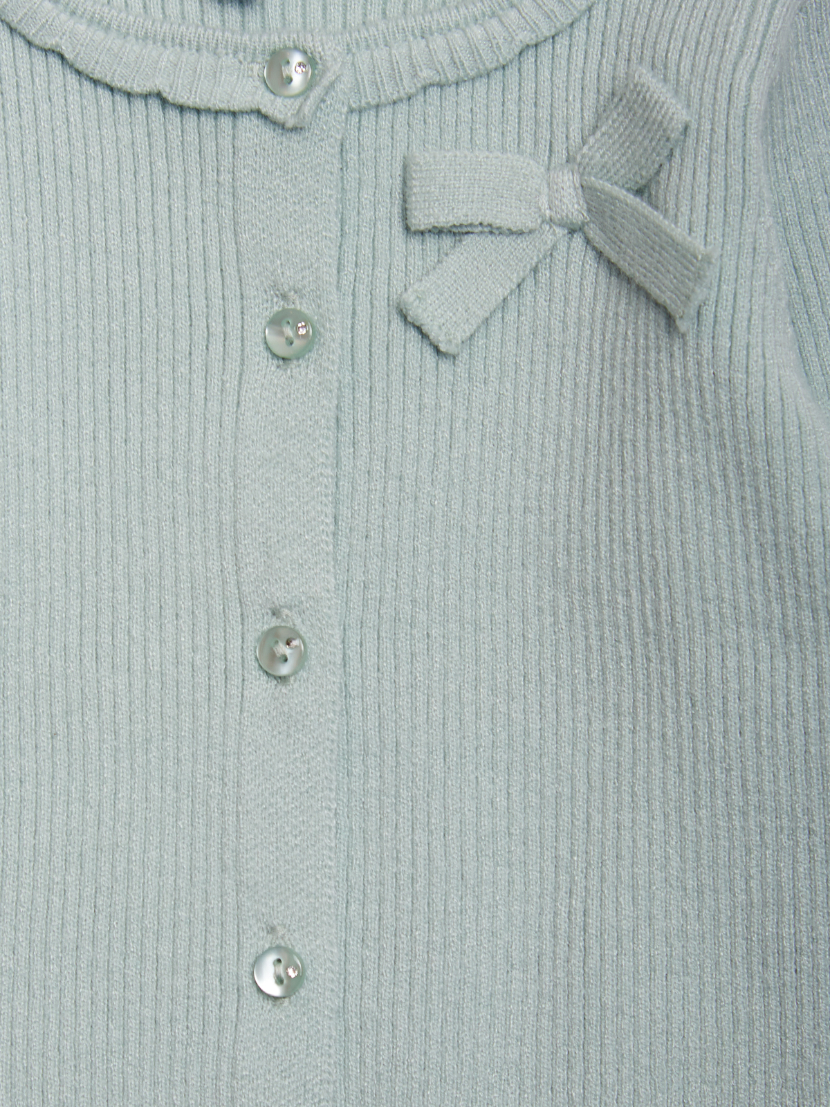 Cardigan in Morbido tricot. Girocollo, apertura frontale con bottoni tono, fiocco decorativo su petto. Finiture a costine lungo i bordi. Un capo estremamente pratico e di facile abbinamento.