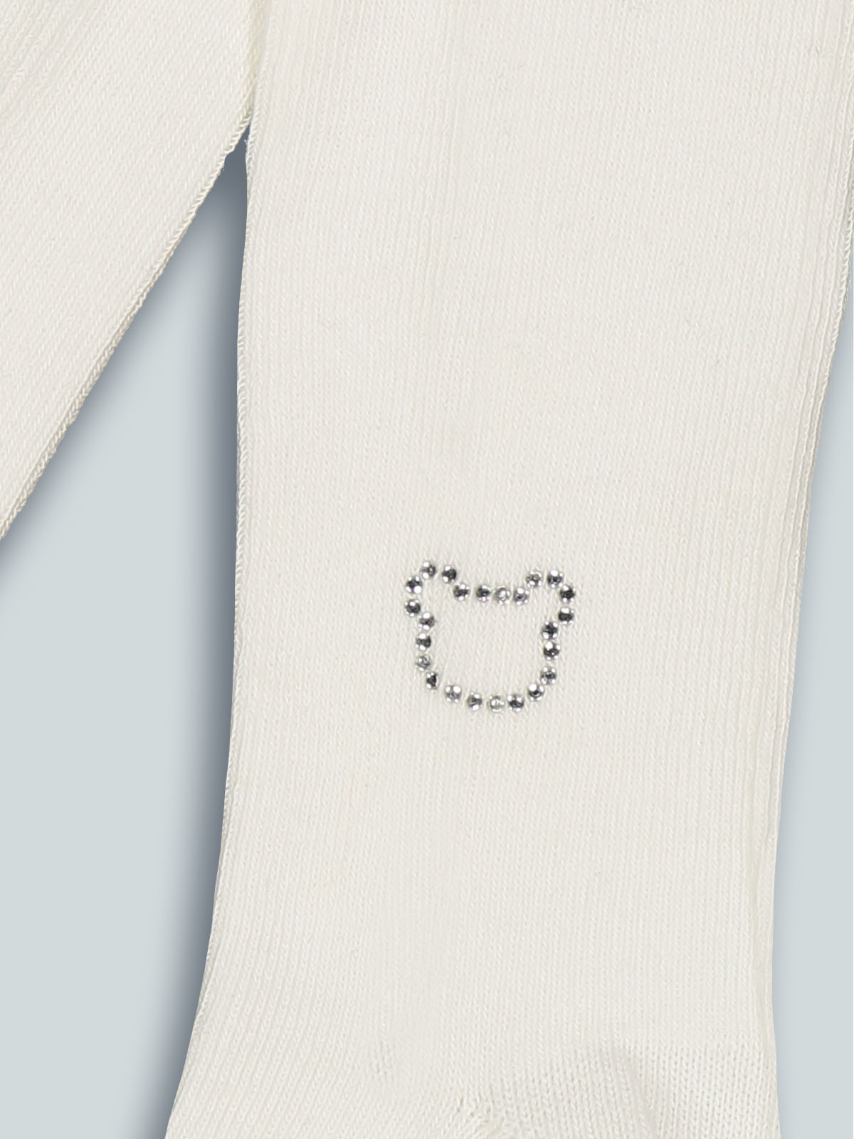 Collant in morbido misto cotone, orsetto in strass. Massimo comfort e ideali da abbinare ai vestiti della collezione.