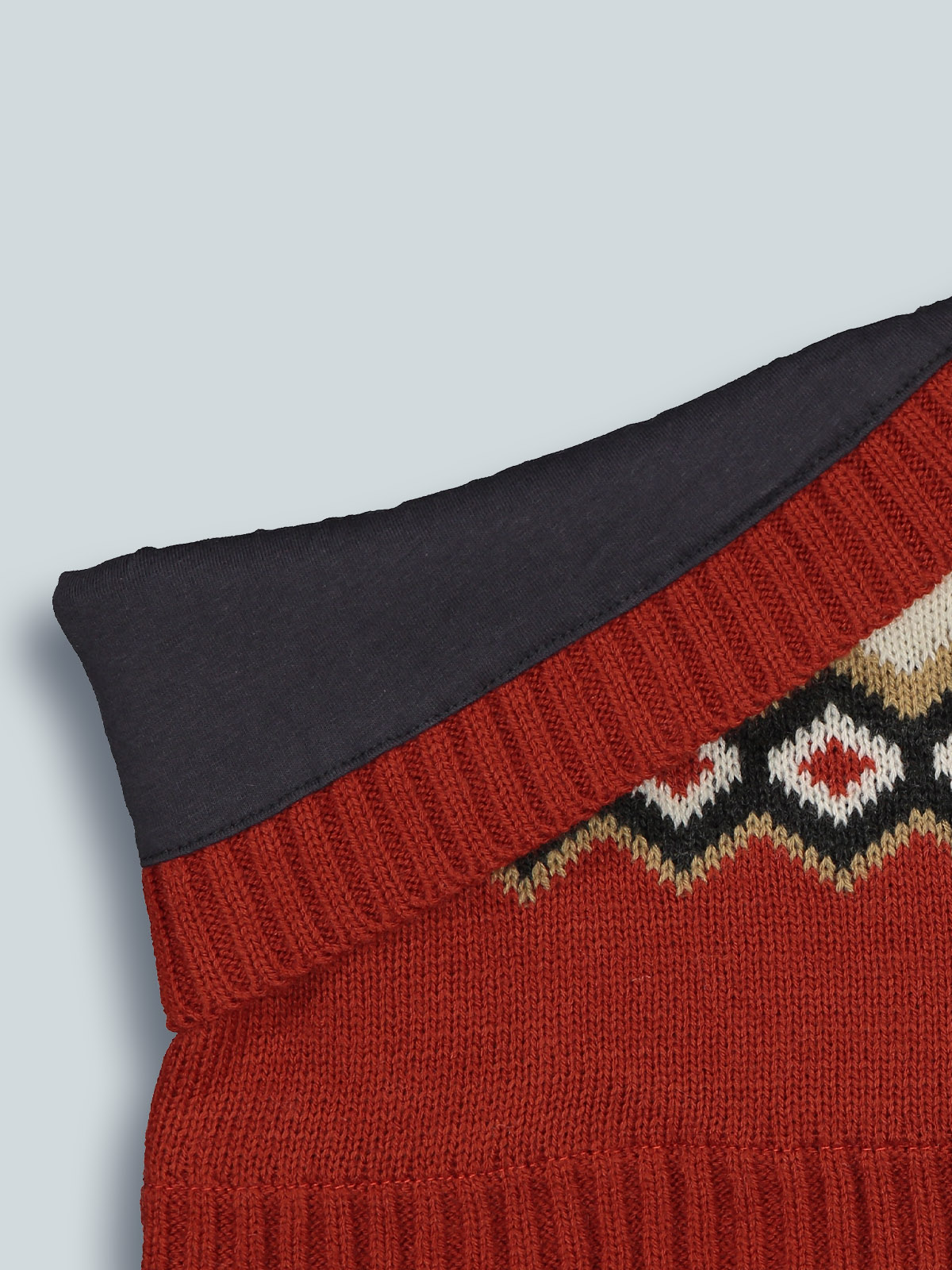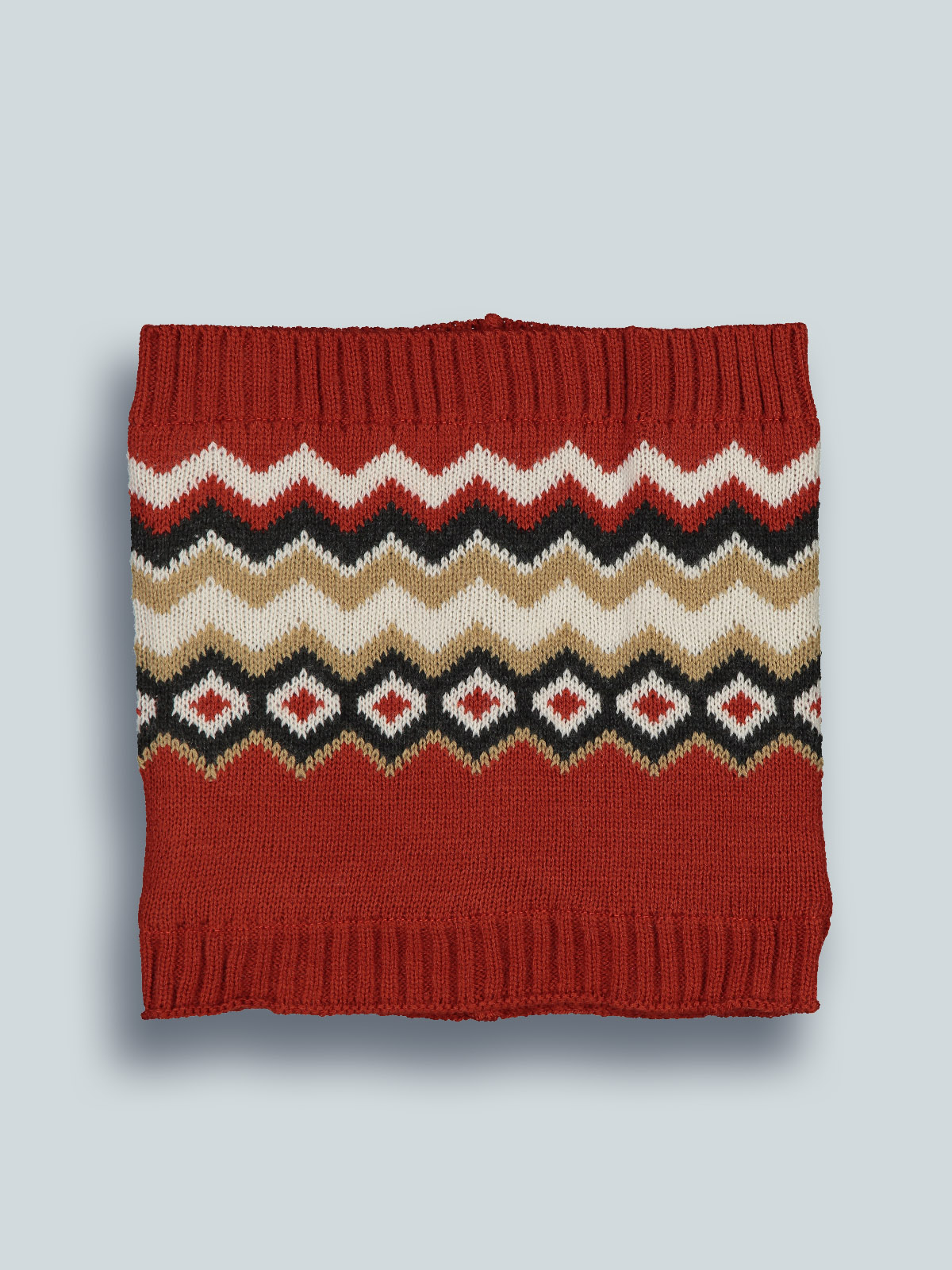 Collo in caldo e morbido tricot con lavorazione greche jacquard, fodera in jersey. Un capo caldo e morbido per giocare nella neve, perfetto in abbinamento alla cuffia.