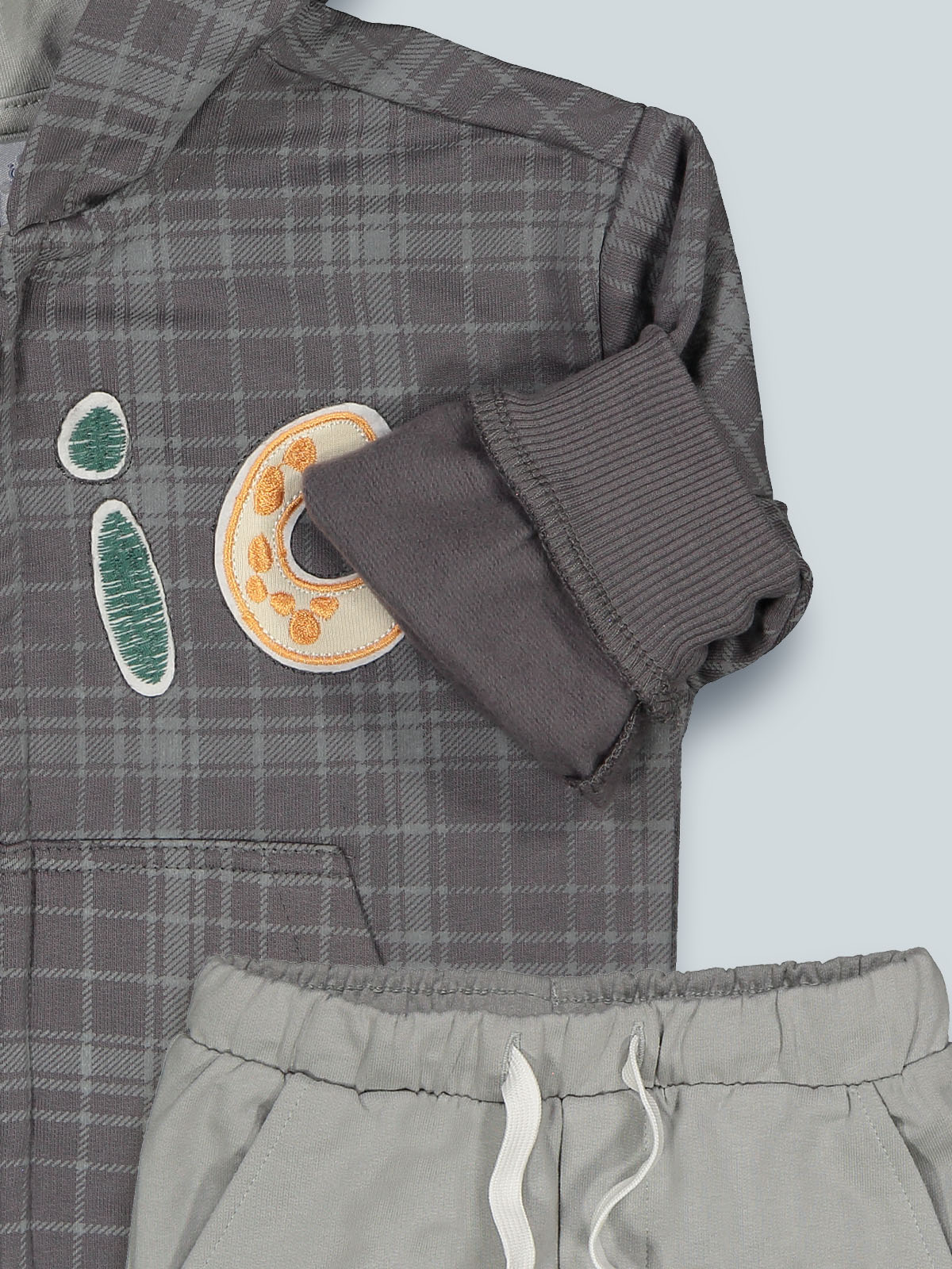 Completo due pezzi in calda felpa ideale per le giornate più fredde. Cardigan con cappuccio stampato in scozzese, apertura con zip, tasca a marsupio e ricamo sul davanti. Pantaloni con vita elasticata e coulisse regolabile, tasche davanti, fondo gambe in costina. L’interno di questo capo è lavorato in modo tale che le fibre del tessuto si sollevino, rendendolo più morbido, soffice e caldo sulla pelle. Ideale per la scuola e per il tempo libero.