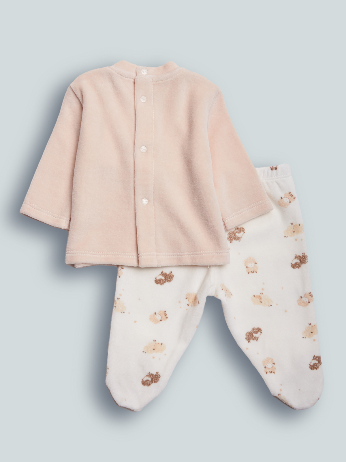 Completo due pezzi composto da coprifasce ciniglia, apertura totale sul dietro con bottoni a pressione. Elemento decorativo: ricamo con applicazioni, ghettina ciniglia stampata. Fantastico per tutti i giorni, data la sua praticità. Questo completo fa parte del corredino composto da tutti gli articoli indispensabili per il tuo neonato.