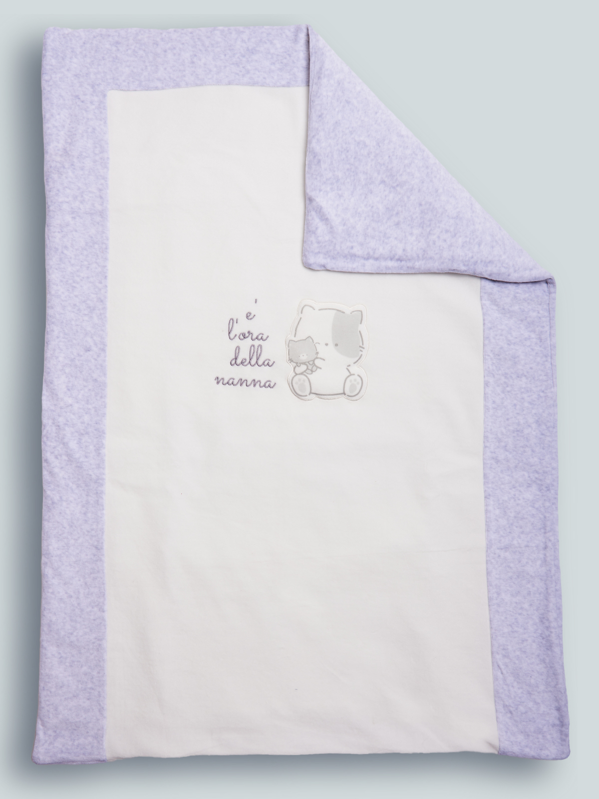 Calda copertina con la quale il tuo piccolo/a si sentirà protetto durante i suoi riposini. Tessuto morbida ciniglia. Elemento decorativo: tenera grafica ricamata con stampa gattino su toppa imbottita riproposto su altri articoli newborn neonato. Particolarità dell’ articolo: sacco imbottito estraibile. Dimensioni dell’articolo: 82 x 60cm. Questo accessorio fa parte del corredino composto da tutti gli articoli indispensabili per il tuo neonato.