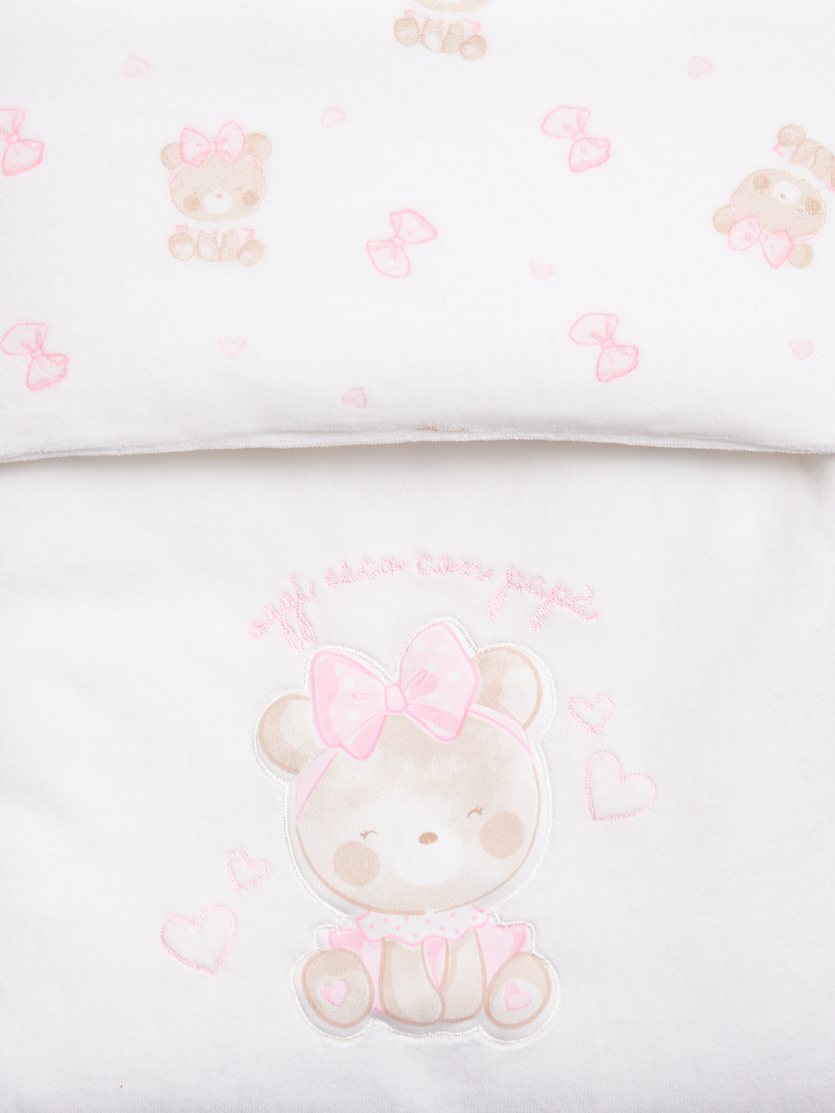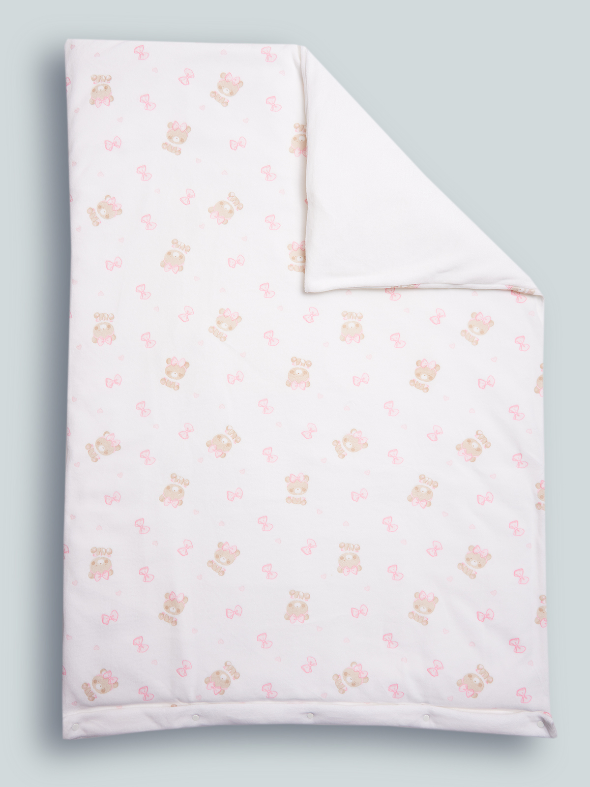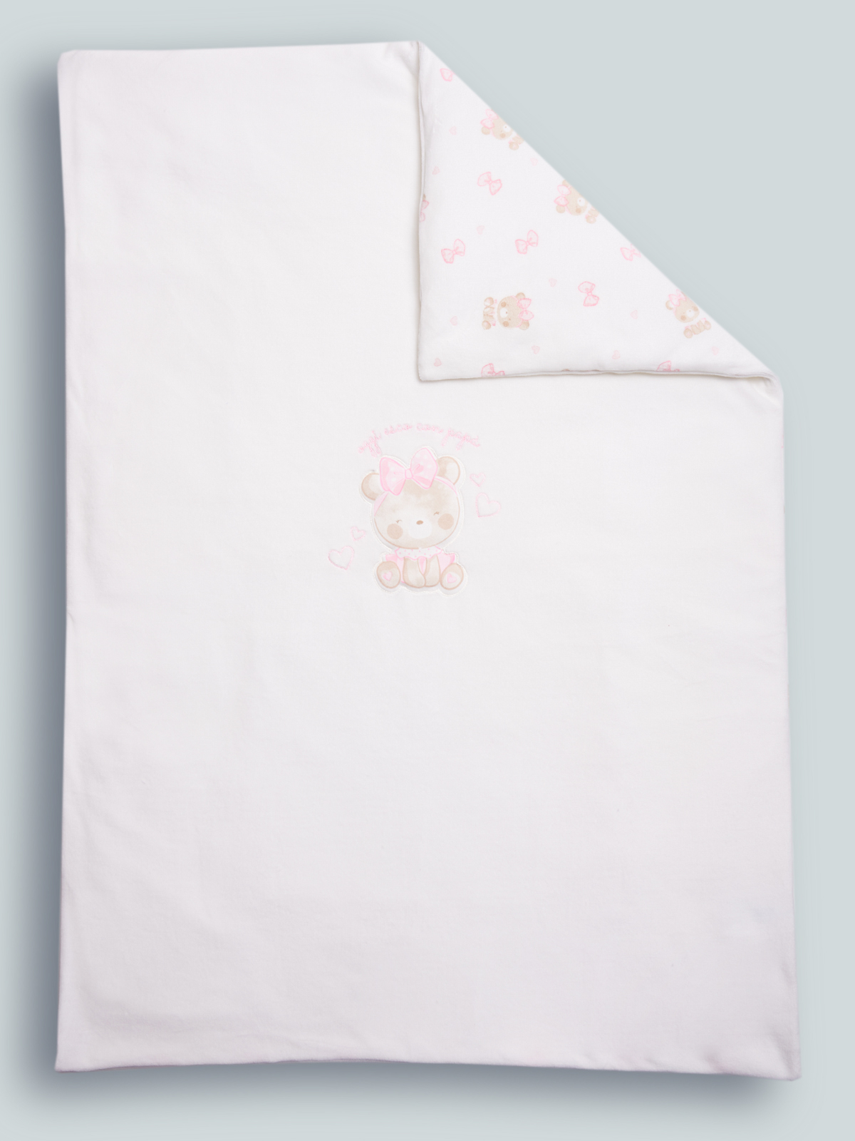Calda coperta con la quale il tuo piccolo/a si sentirà protetto durante i suoi riposini, in Morbida ciniglia. Elemento decorativo: tenera grafica ricamata e stampata riproposto su altri articoli. Particolarità dell’ articolo: sacco imbottito estraibile. Dimensioni dell’articolo: 82 x 60cm. Questo accessorio fa parte del corredino composto da tutti gli articoli indispensabili per il tuo neonato.