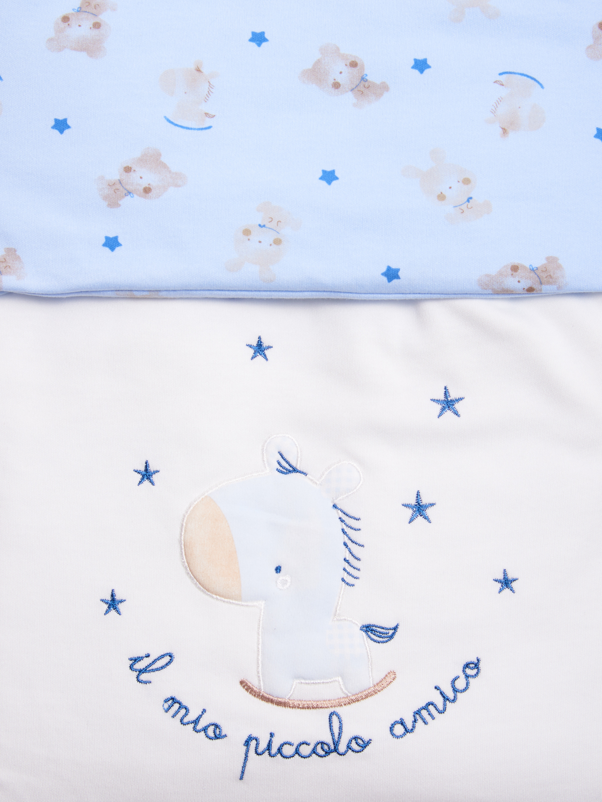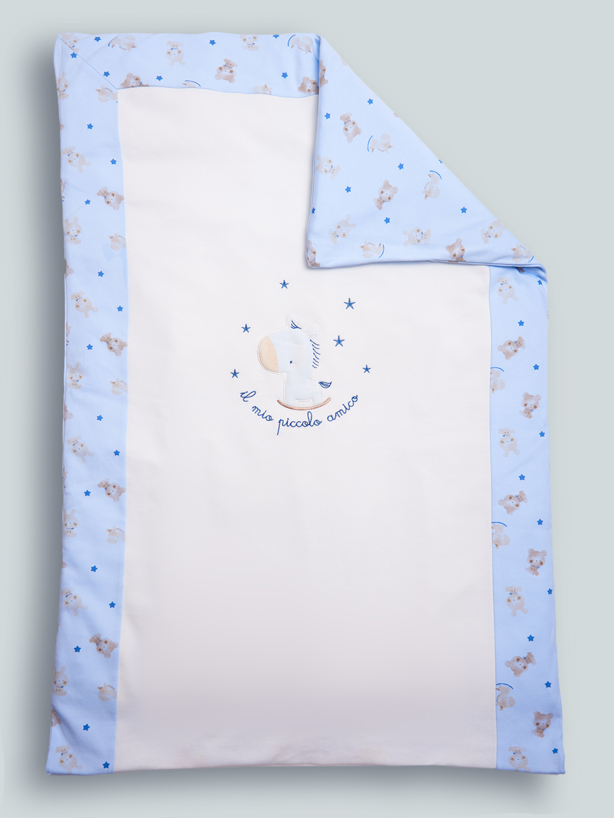 Calda copertina con la quale il tuo piccolo/a si sentirà protetto durante i suoi riposini. Tessuto caldo cotone fantasia e unito. Elemento decorativo: spiritosa grafica ricamata e stampata riproposto su altri articoli newborn neonato. Particolarità dell’ articolo: sacco imbottito estraibile. Dimensioni dell’articolo: 82 x 60cm. Questo accessorio fa parte del corredino composto da tutti gli articoli indispensabili per il tuo neonato.