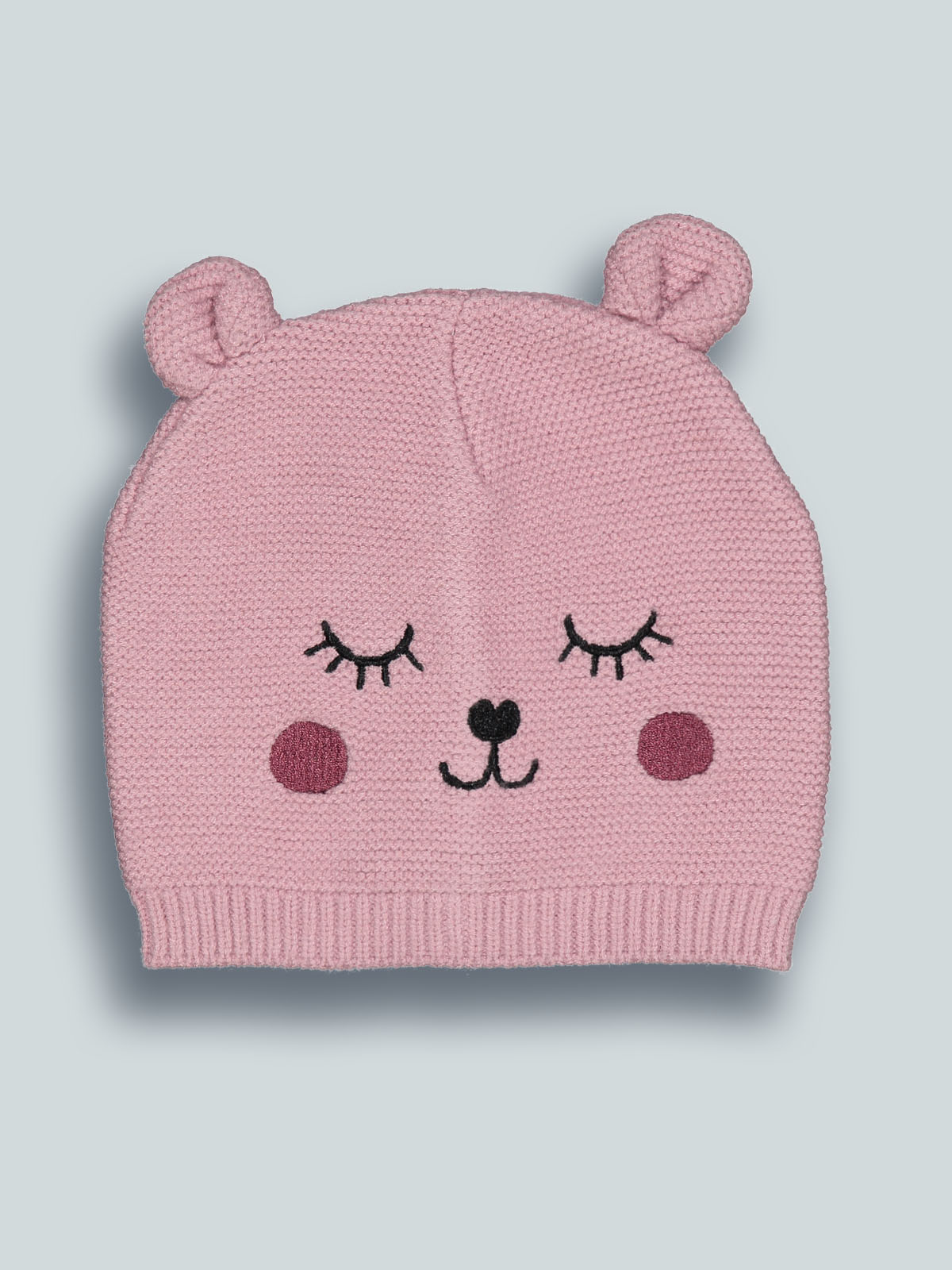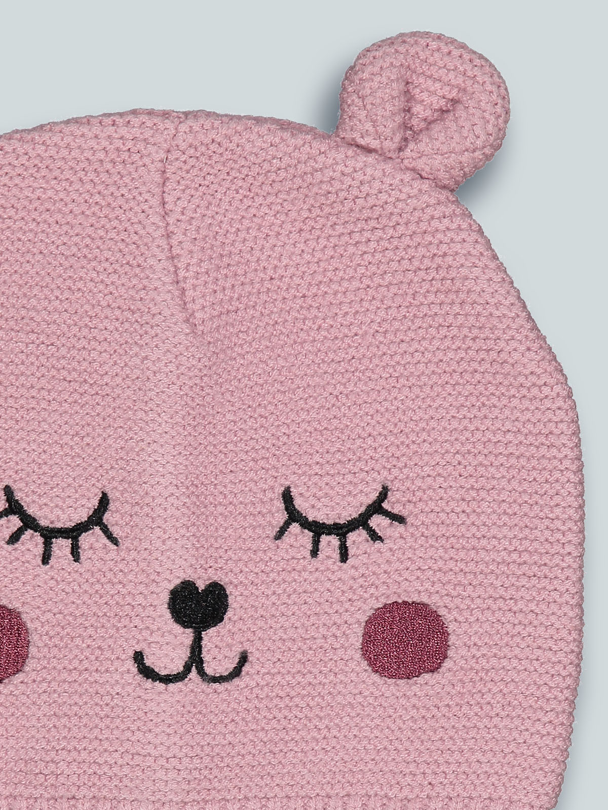 Cuffia in maglia di morbido cotone con simpatico musetto e orecchie tridimensionali. E’ perfettamente abbinabile alla sua sciarpa coordinata, e alle sue moffole, realizzati con lo stesso filato. La cuffia ideale per tenere al caldo la vostra bambina nelle giornate invernali.