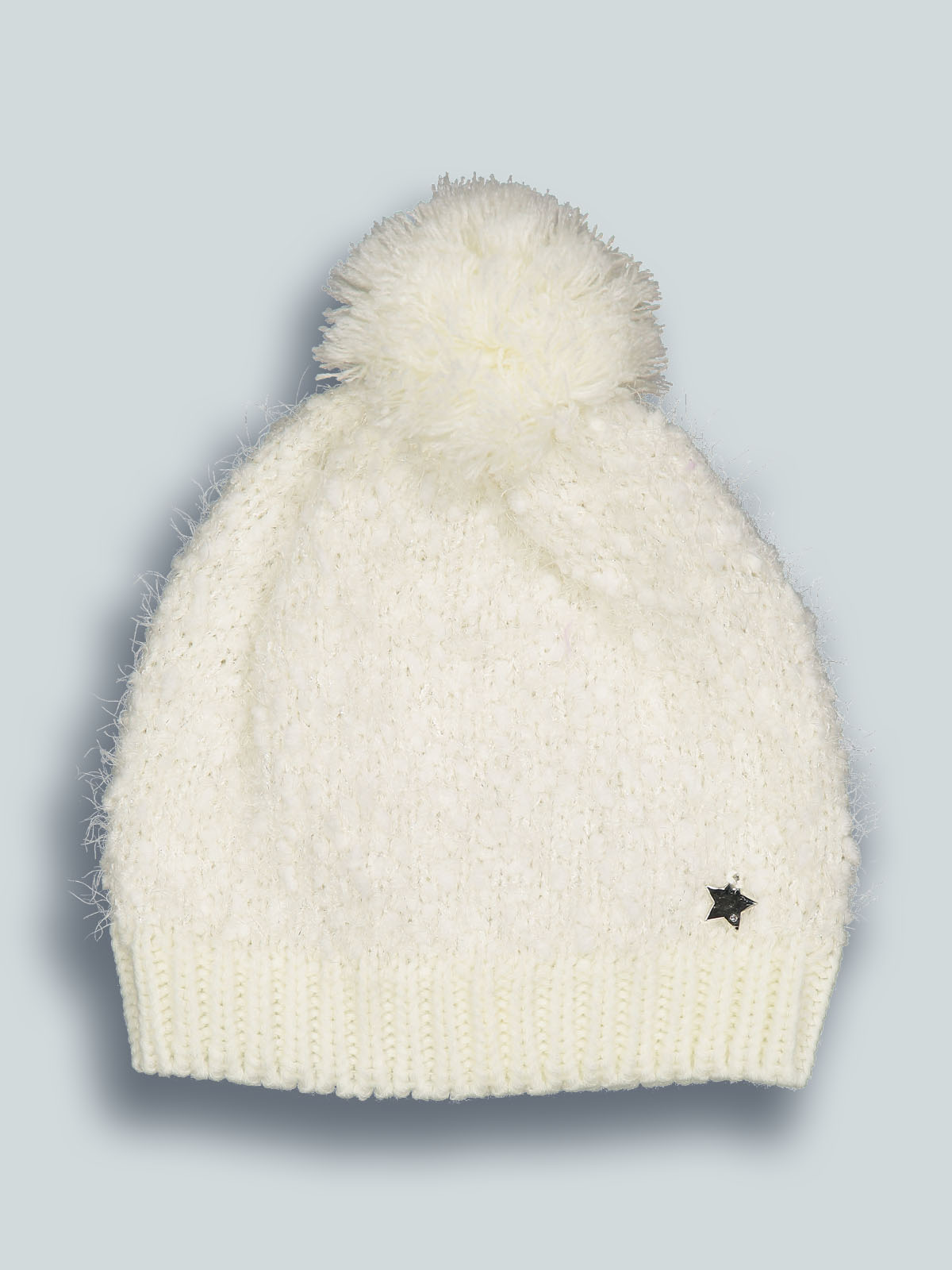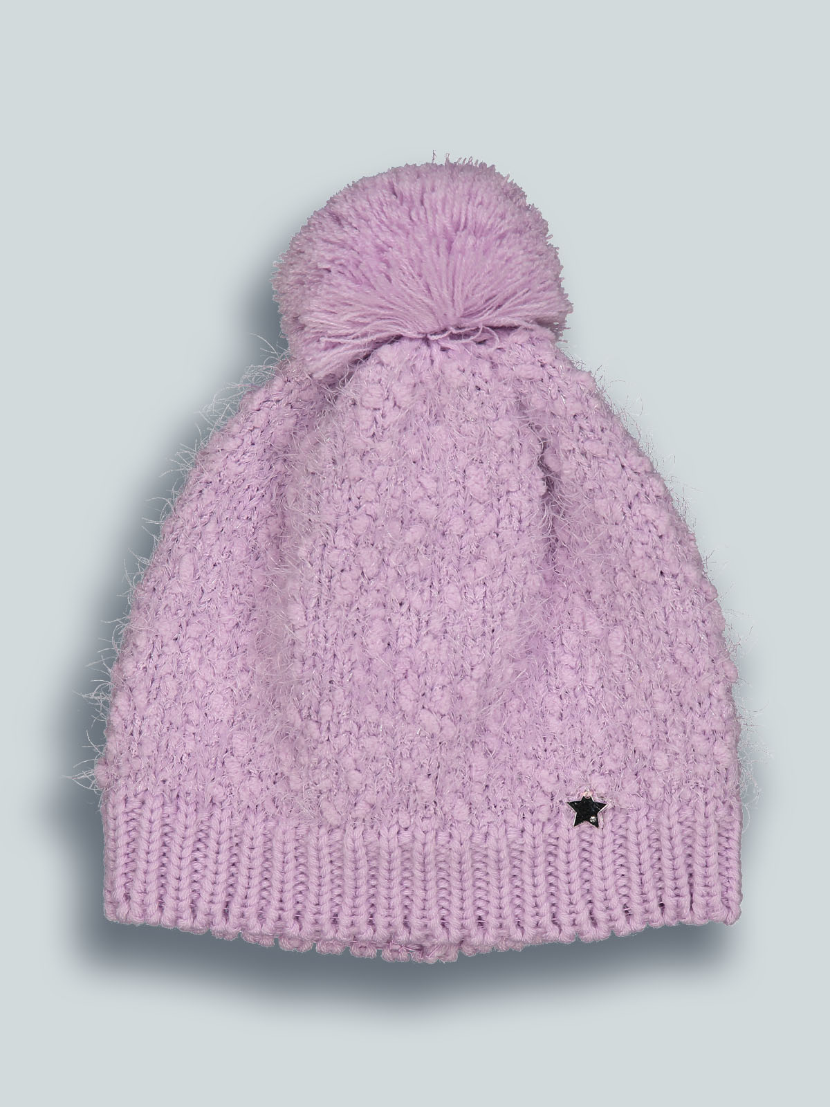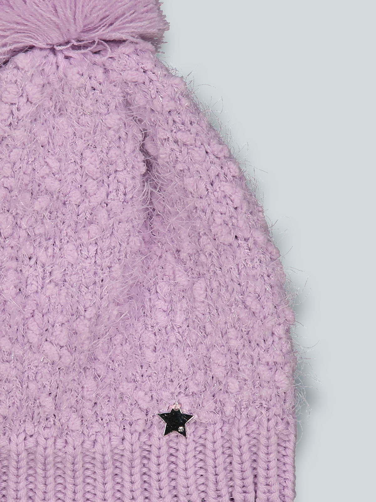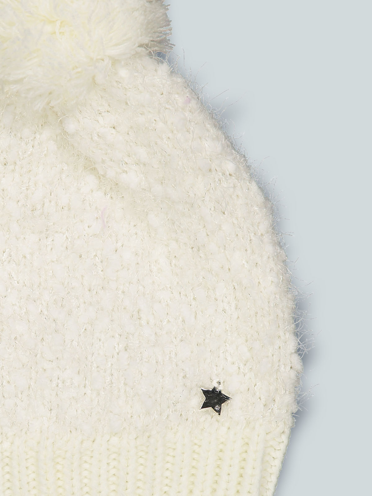 Cuffia in morbido pelouches e lurex argento con pompon, medaglietta cuoricino sul davanti. E’ perfettamente abbinabile al suo collo, realizzato con lo stesso filato. Ideale per le giornate più fredde.