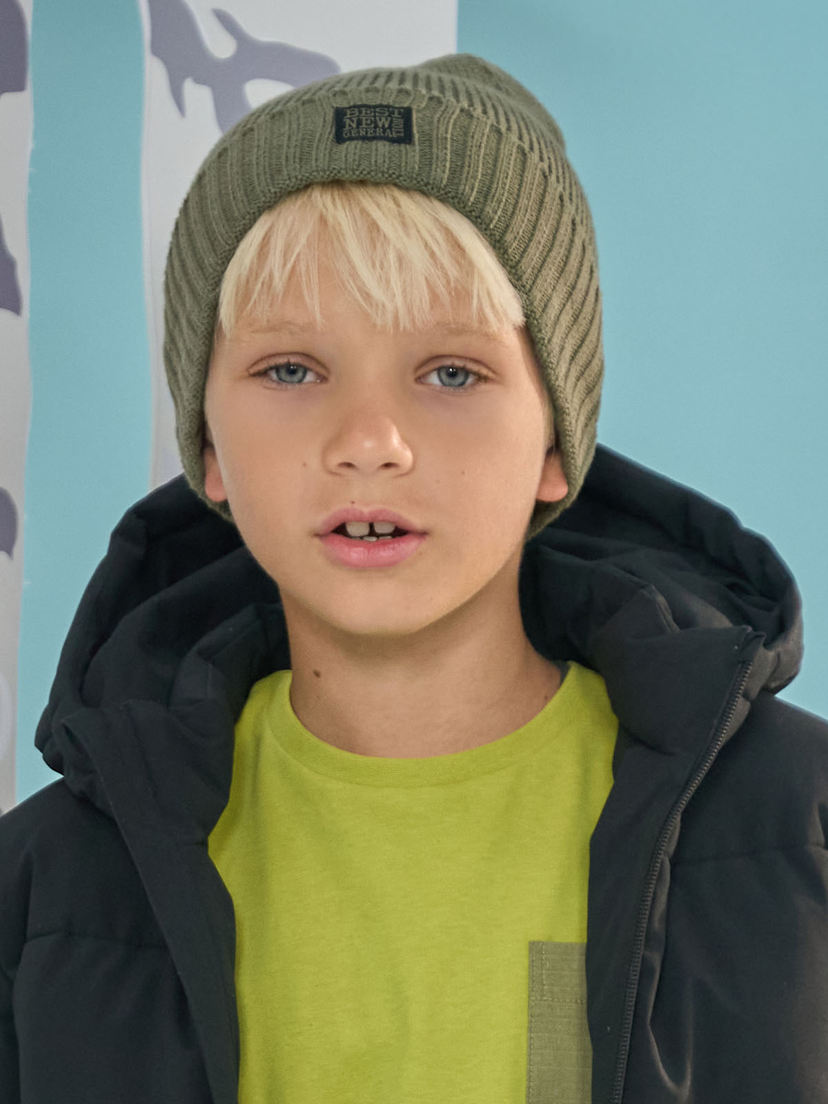 Cuffia in caldo e morbido tricot con risvolto e piccola etichetta. Un’accessorio basico che si adatta a qualsiasi look, da abbinare al collo coordinato.