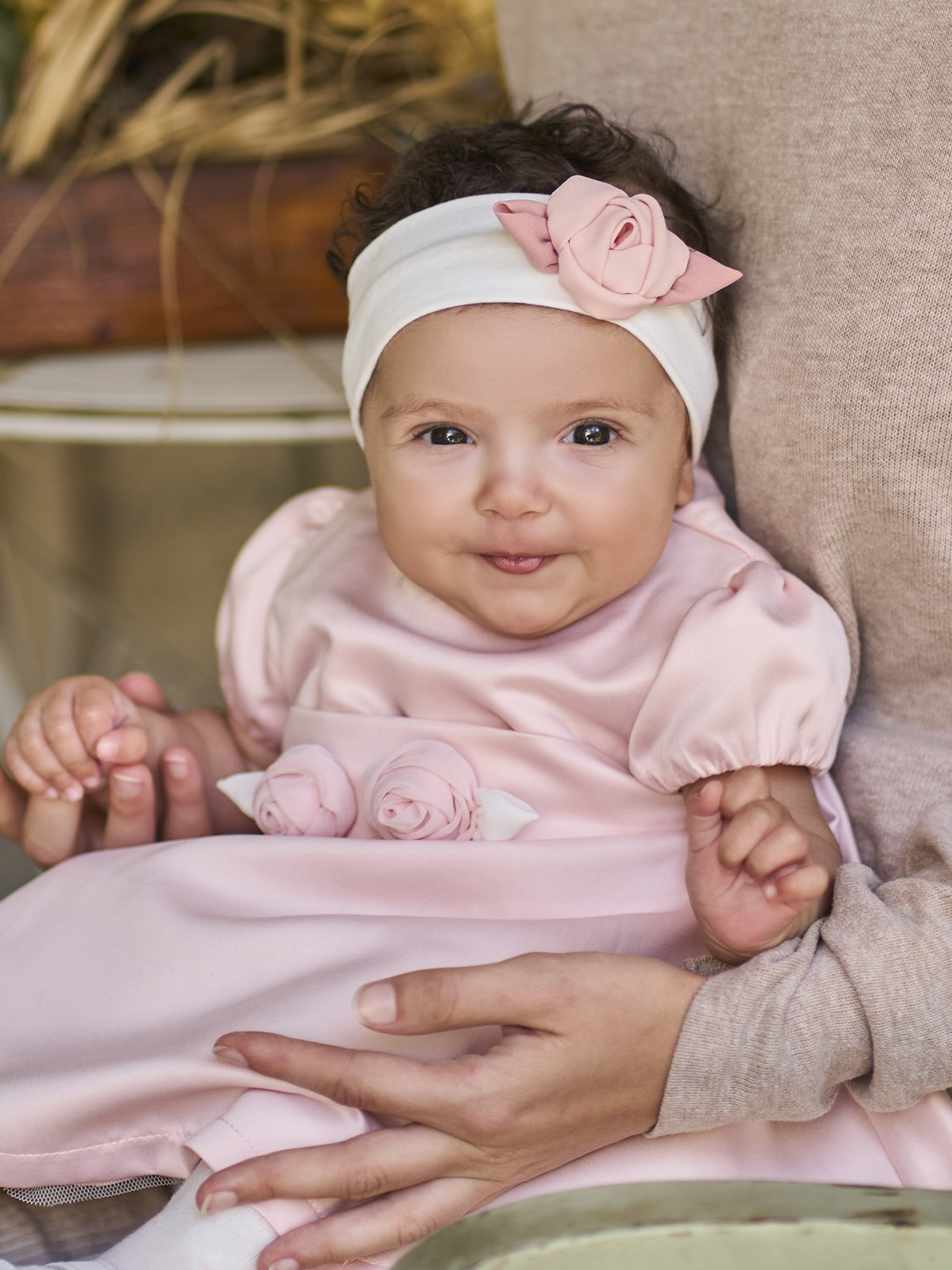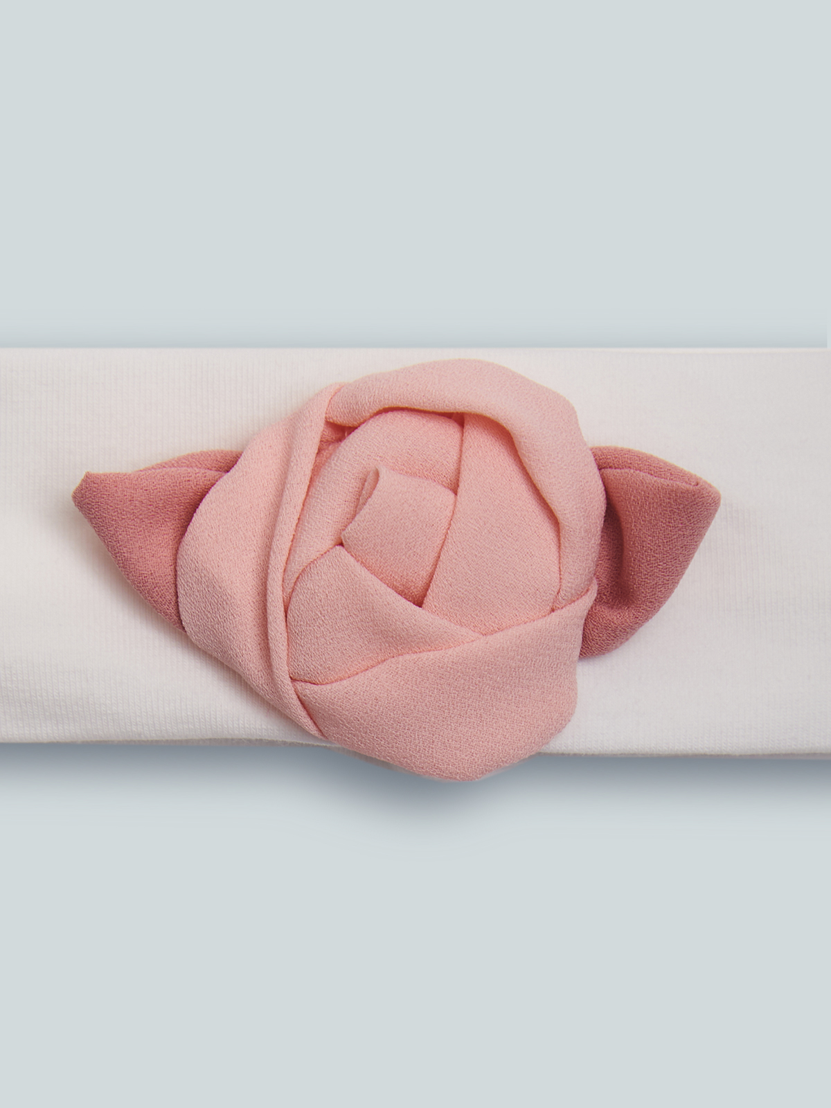 Fascetta di cotone elasticizzato, impreziosita da fiore. Originale accessorio per neonata perfetto per rifinire il suo look.