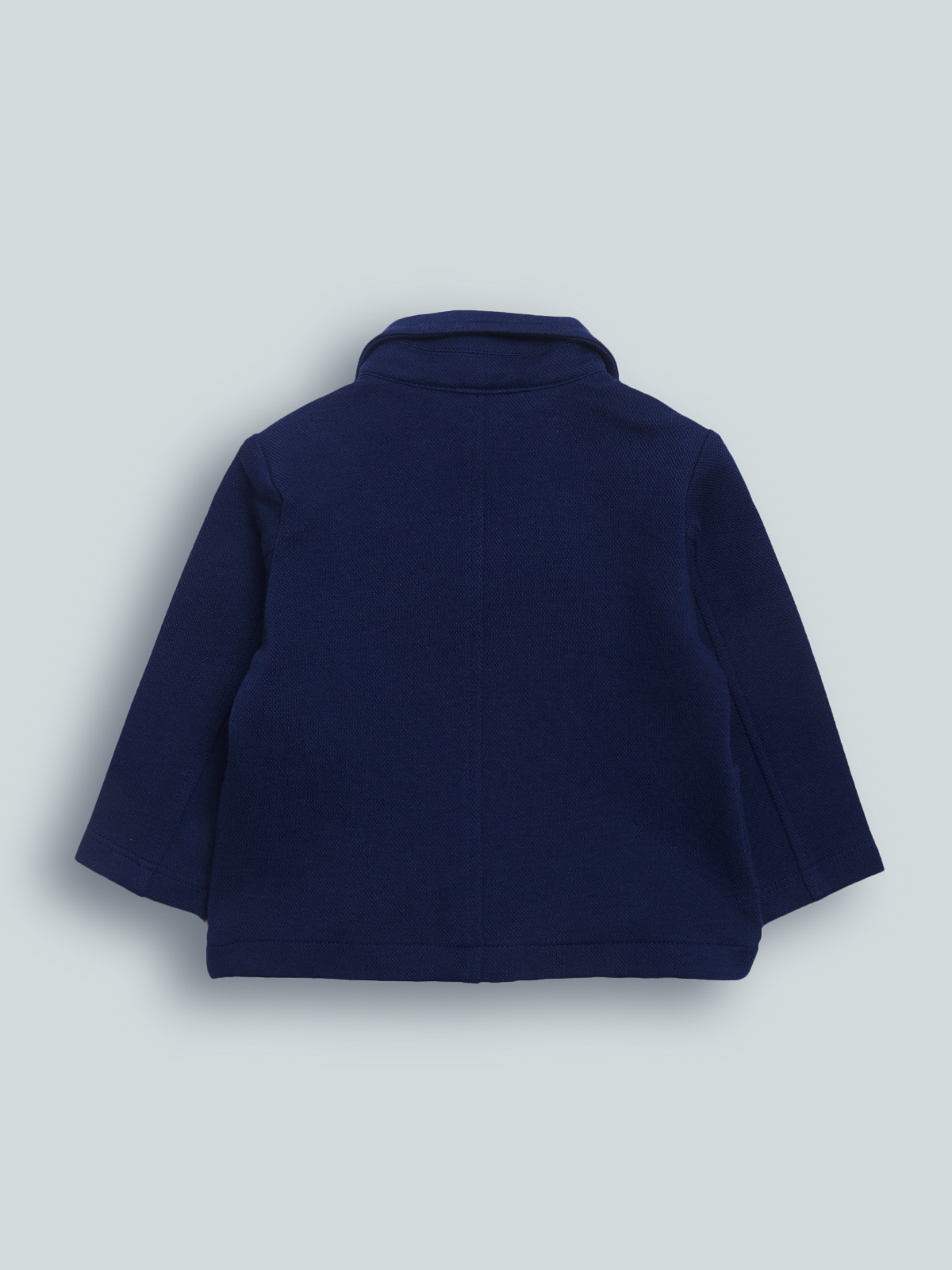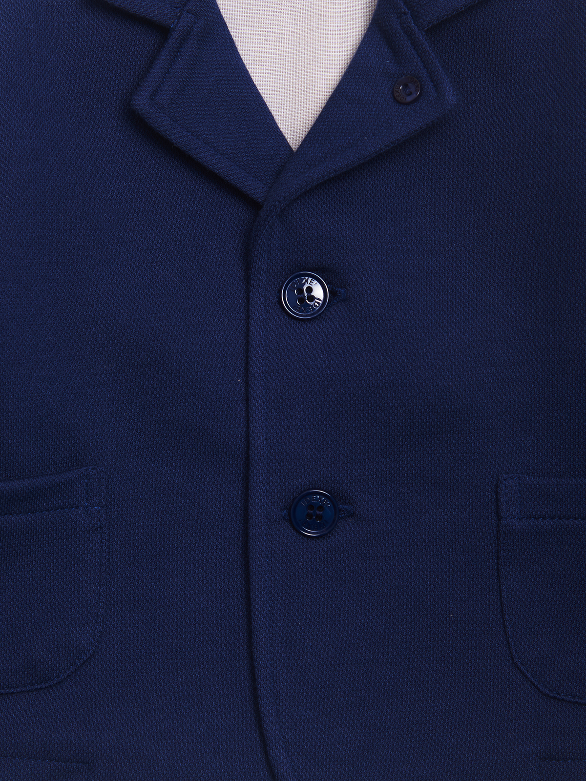 Giacca in Morbido tessuto Maglia effetto piquet, apertura davanti con bottone, tasche applicate. Rifiniture interne contrasto. Un capo dal sapore “dandy” ed elegante, ideale per le occasioni speciali.