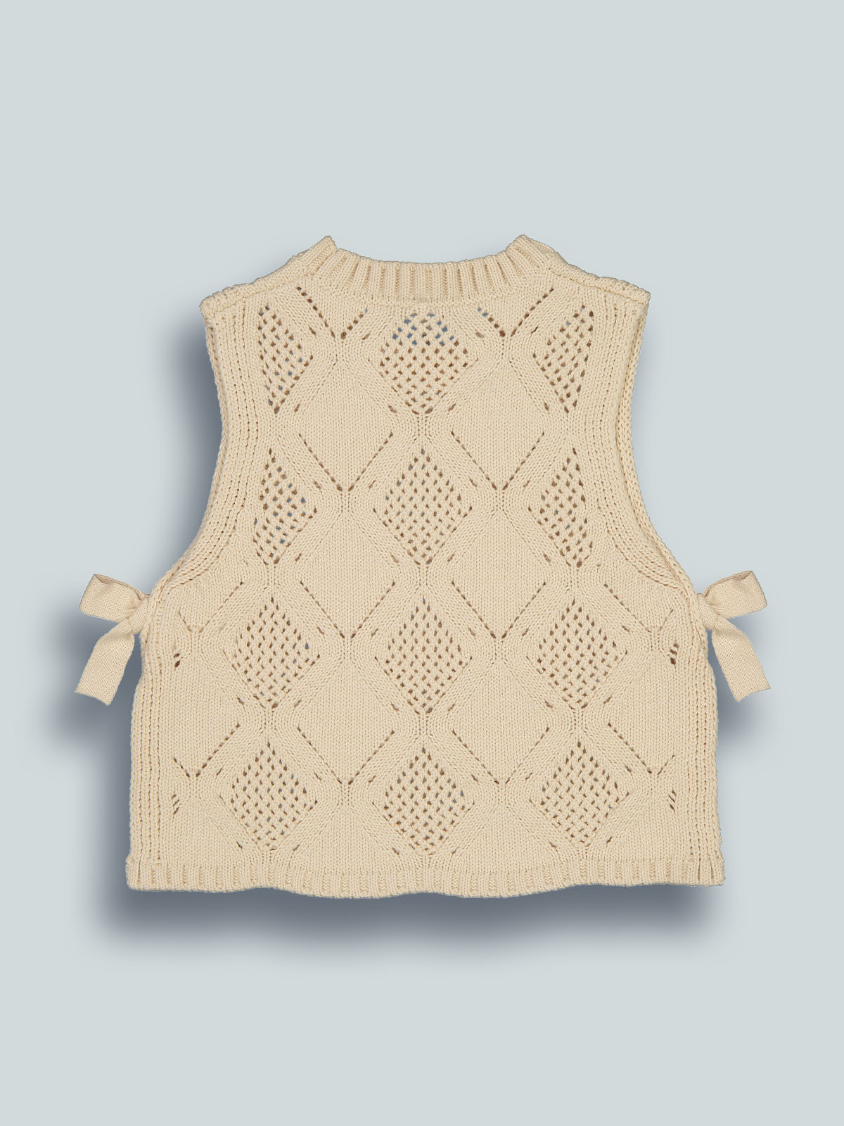 Gilet in morbida maglia traforata rombi. Un capo sfizioso e molto femminile.