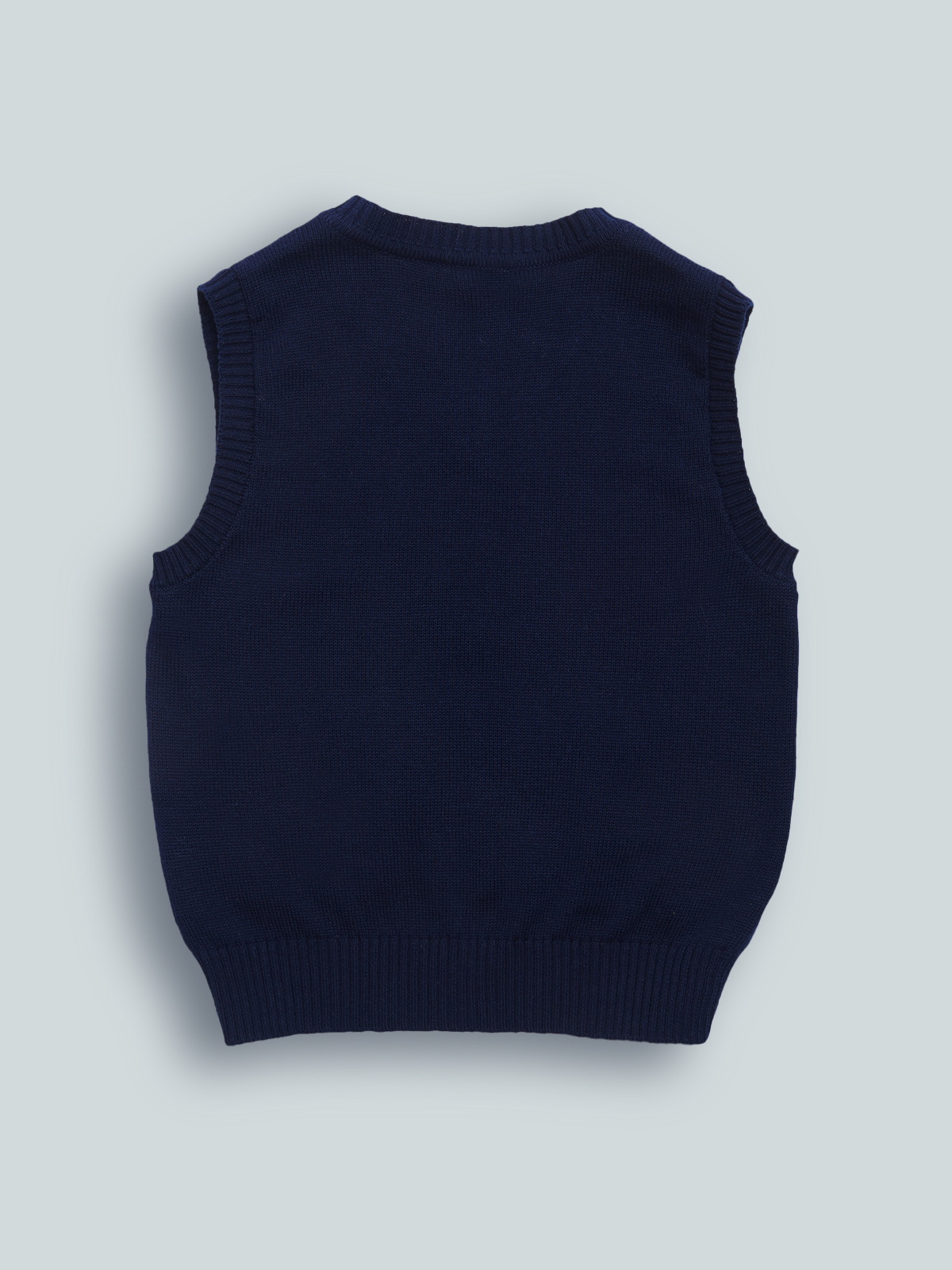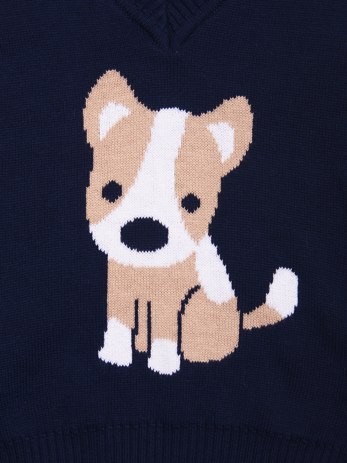 Gilet in Morbido e caldo tricot con scollo a punta, cagnolino in lavorazione jaquard sul davanti. Perfetto in abbinamento ad una camicia, per un look elegante in stile “dandy”.
