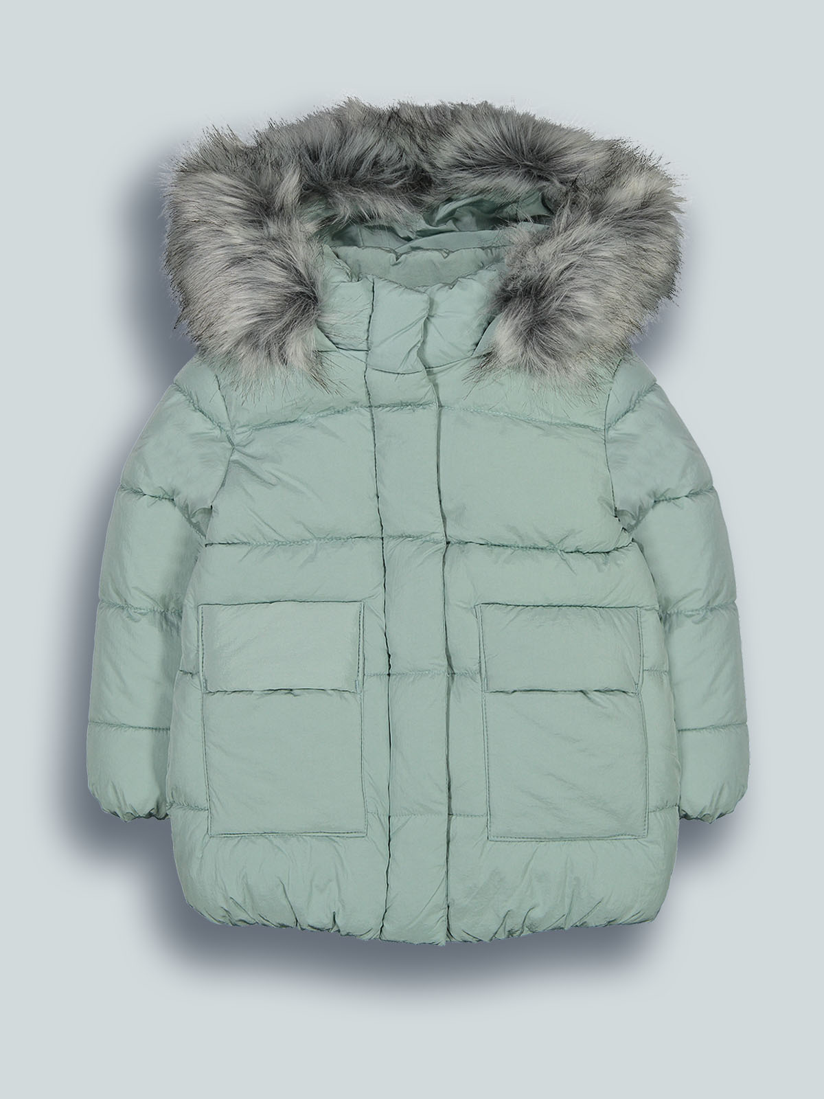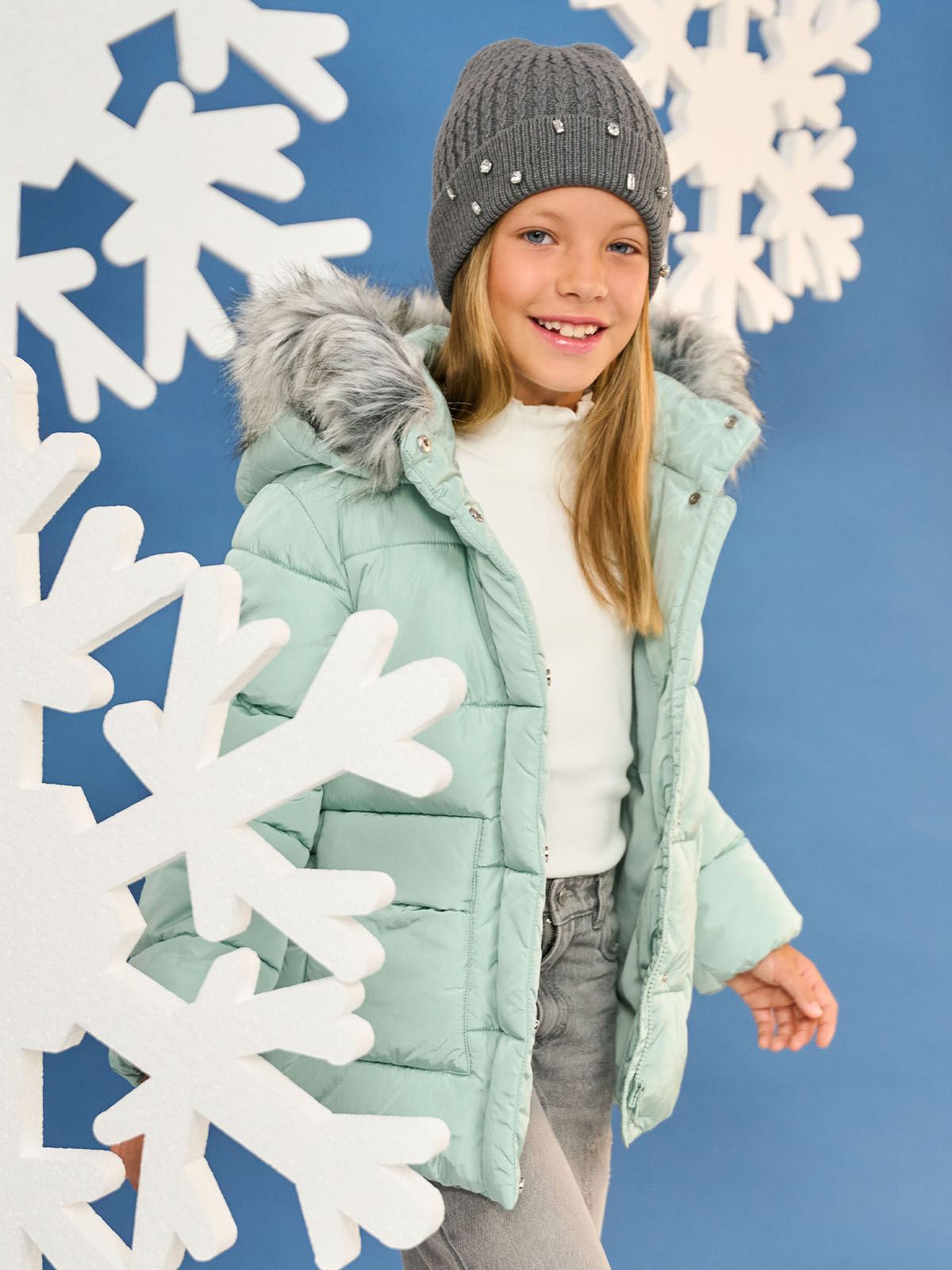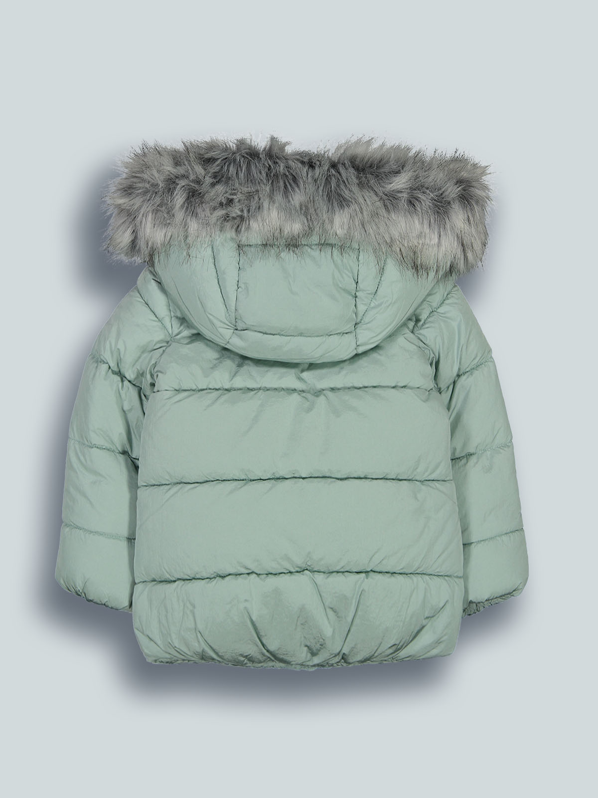 Giubbotto imbottito con cappuccio staccabile in nylon. Apertura zip frontale coperta dalla paramontura. Pelouches al cappuccio staccabile. Un capo caldo e comodo per affrontare l’inverno con un tocco glam.