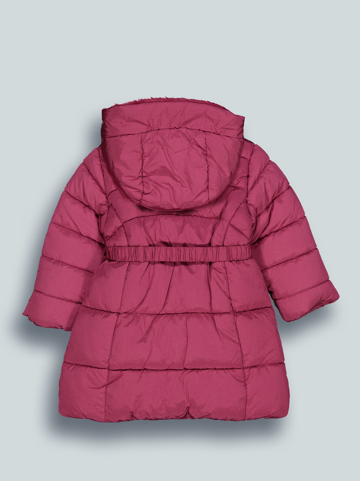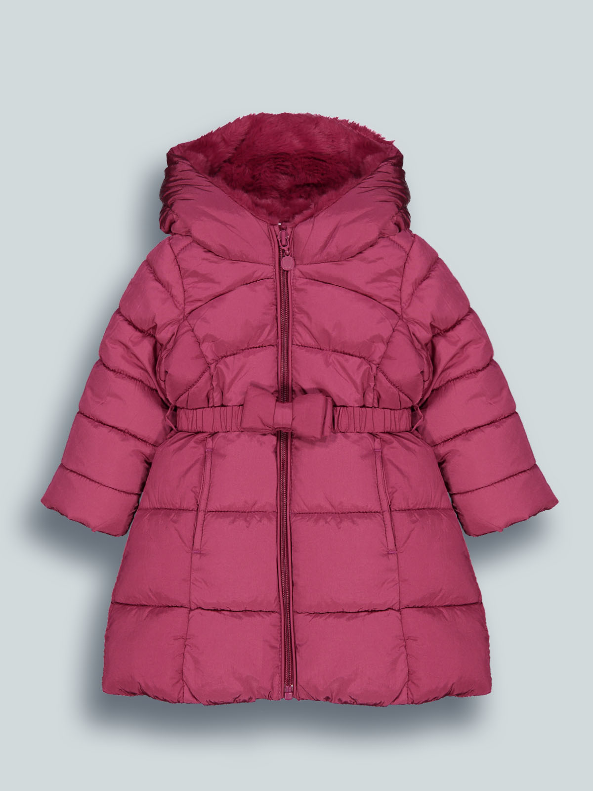Giubbotto lungo imbottito in nylon con peluches per interno cappuccio. Foderato internamente in pile. Pratico da indossare grazie all’apertura frontale con zip. Sfiziosa cintura staccabile con fiocco. Un must have della stagione. Ideale per vestire con stile anche quando le temperature si fanno più rigide.