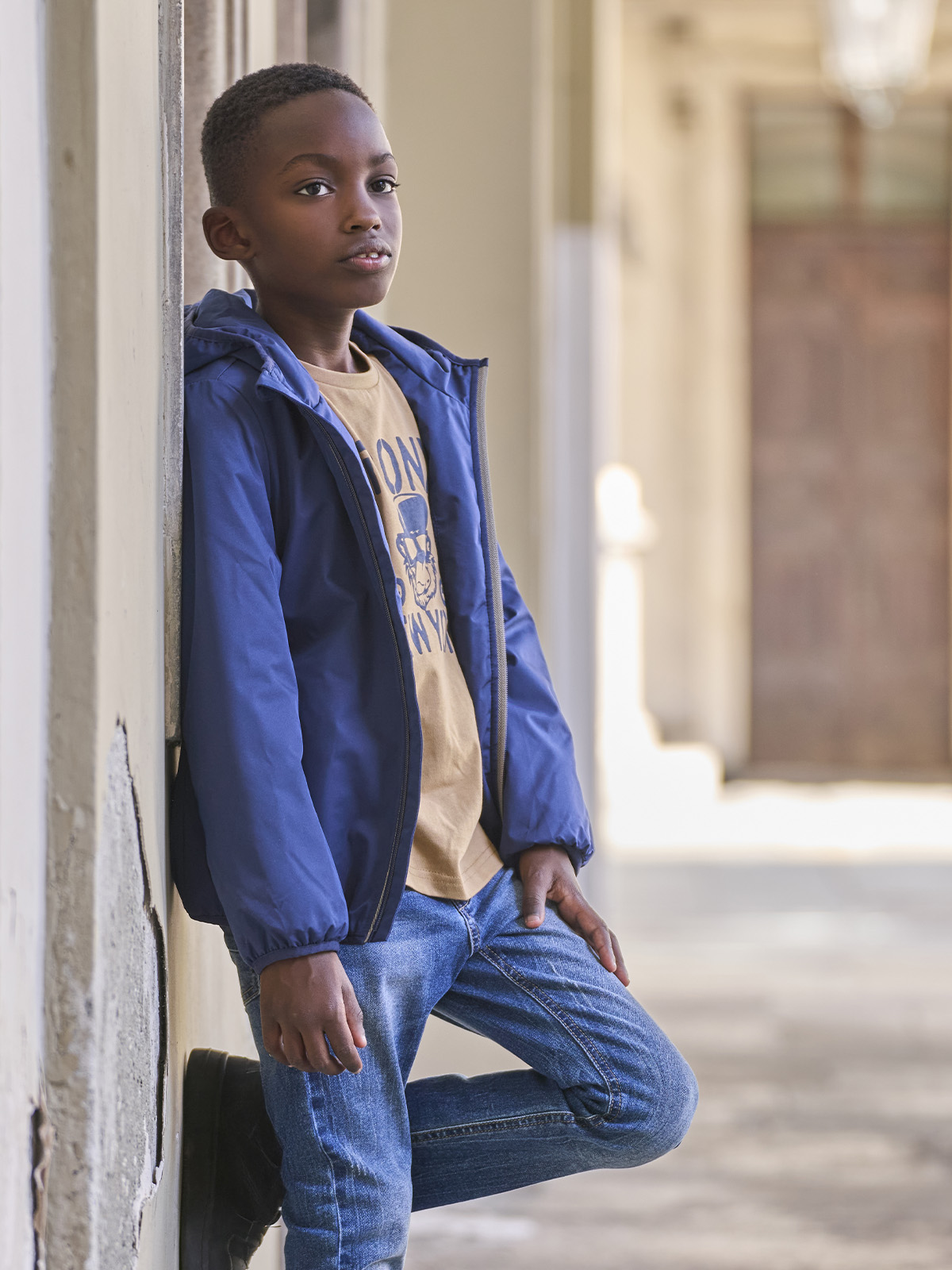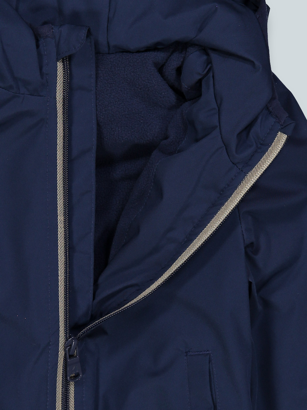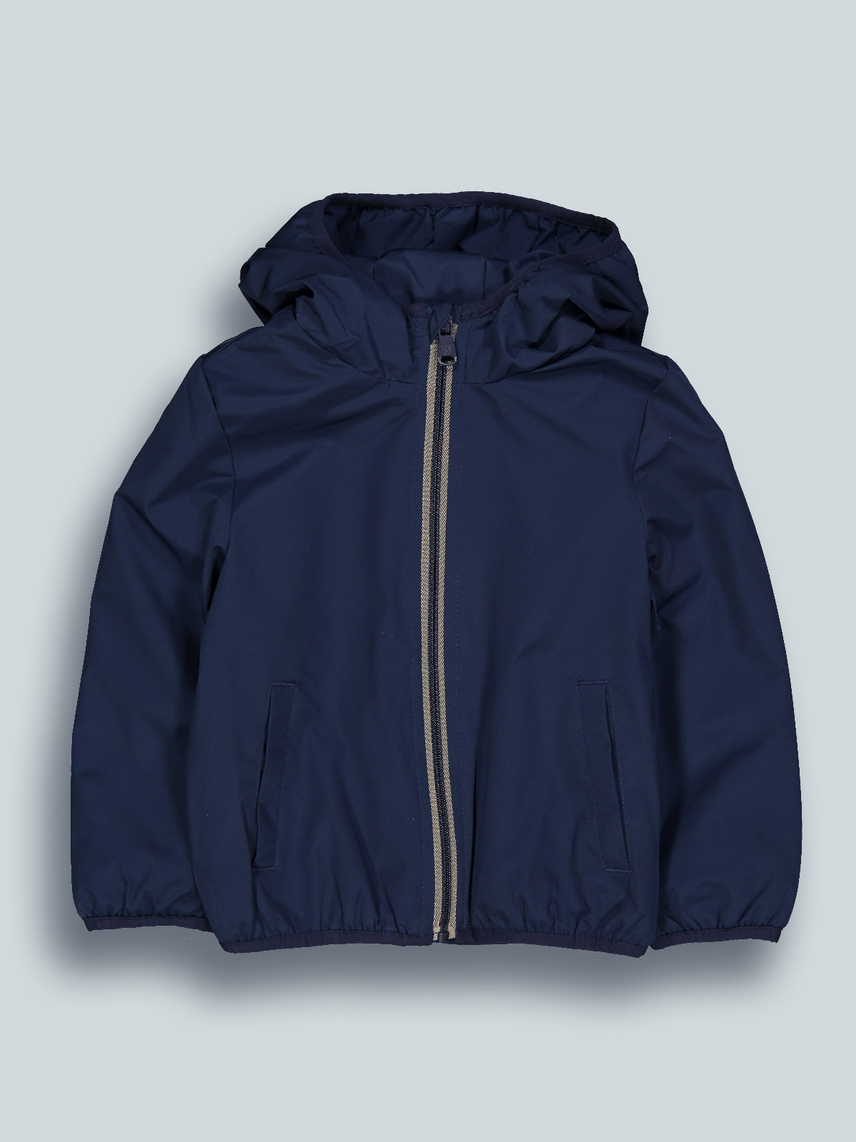 Giubbotto antivento in nylon con cappuccio, imbottito leggero. Aperto davanti con zip, tasche a filetto, bordi in fettuccia elasticata. Fodera in morbido pile e nylon. Un capo ideale per i primi freddi di stagione e perfetto per il “back to school”.