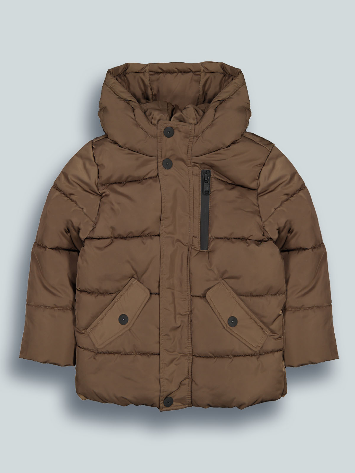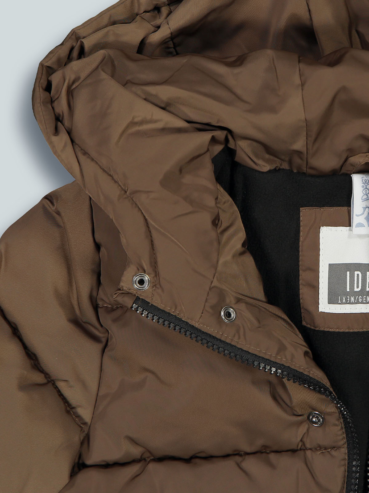 Giubbotto con cappuccio in nylon spalmato semilucido, trapuntato con ovatta pesante. Aperto con zip, tasche davanti con pattine e zip sul petto, polsi salvaneve in morbida costina. Fodera interna in caldo pile e nylon, interno cappuccio in nylon. Il giubbotto ideale per le fredde giornate d’inverno.