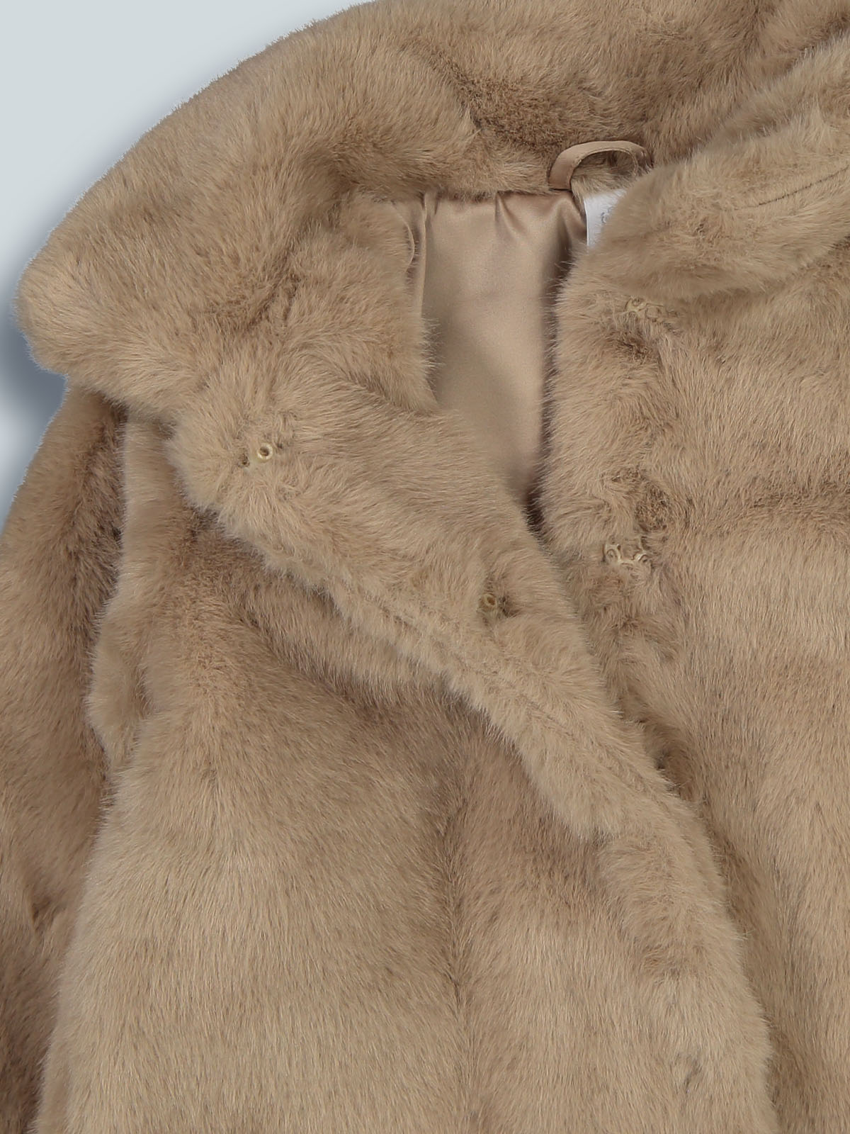 Giubbotto in caldo pelouches foderato in satin. Un capo molto cool che piacerà alle mamme e alle bambine attente ai trend di stagione.