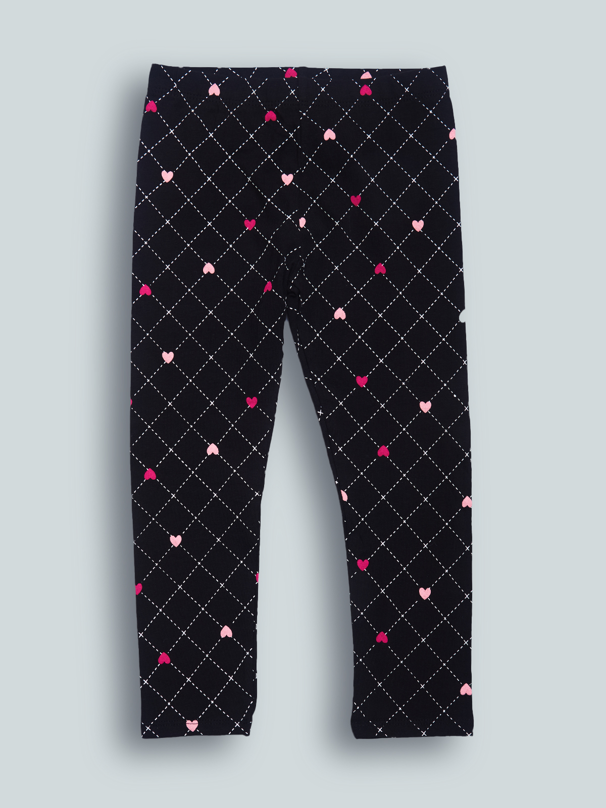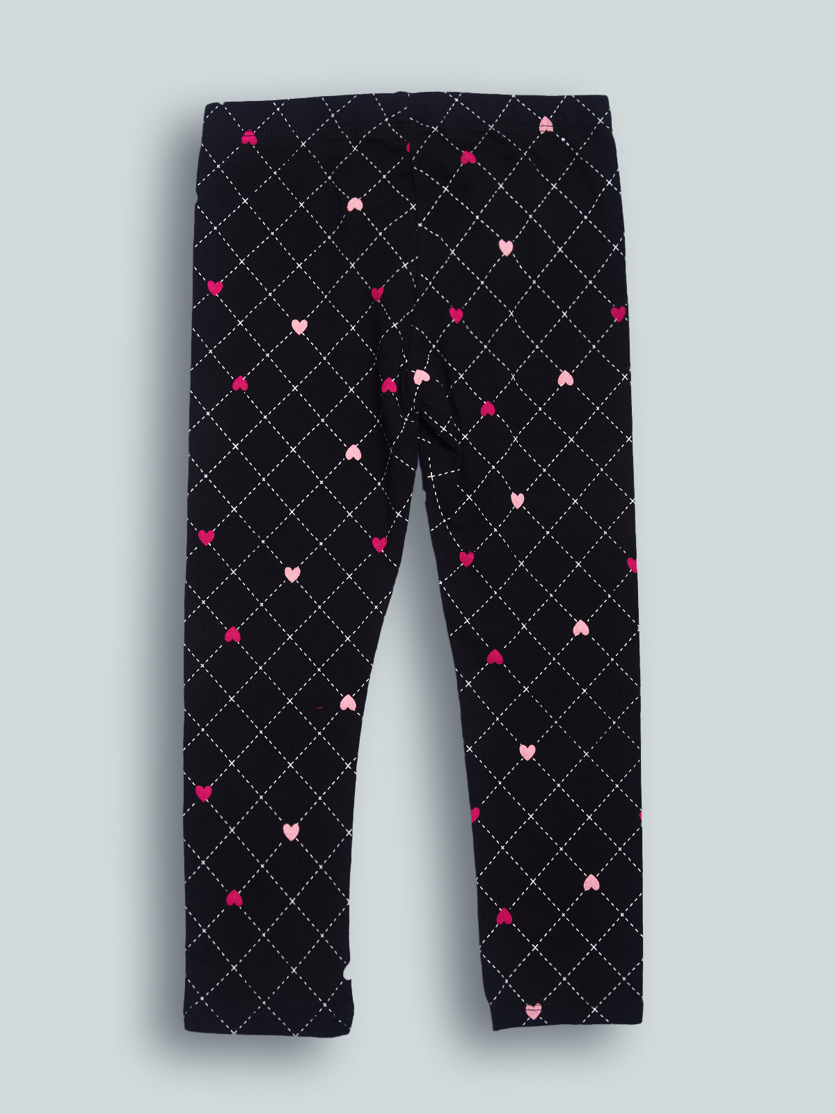 Leggings in Morbido cotone elasticizzato fantasia cuori, vita elasticata per Maggiore comodità. Un capo comodo e versatile, ideale per essere sempre al passo con la Moda.