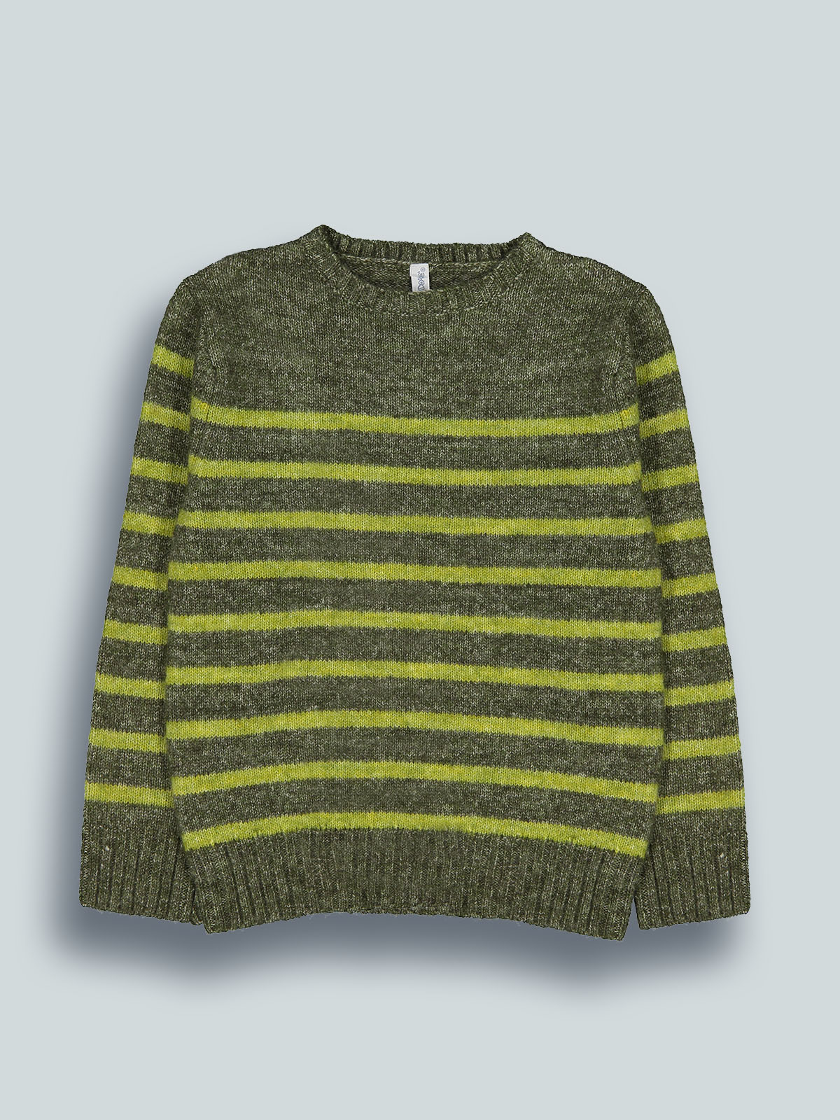 Maglioncino girocollo in morbido tricot rigato melange con una mano molto calda. Un capo nei colori di tendenza della stagione, facile da abbinare.