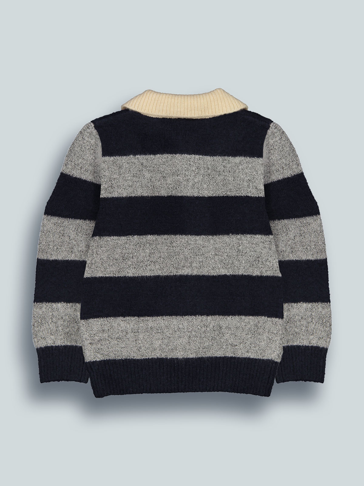 Maglioncino in caldo e morbido tricot rigato, modello con colletto e abbottonatura a polo in contrasto. Un capo di tendenza per la stagione invernale, facile da abbinare.