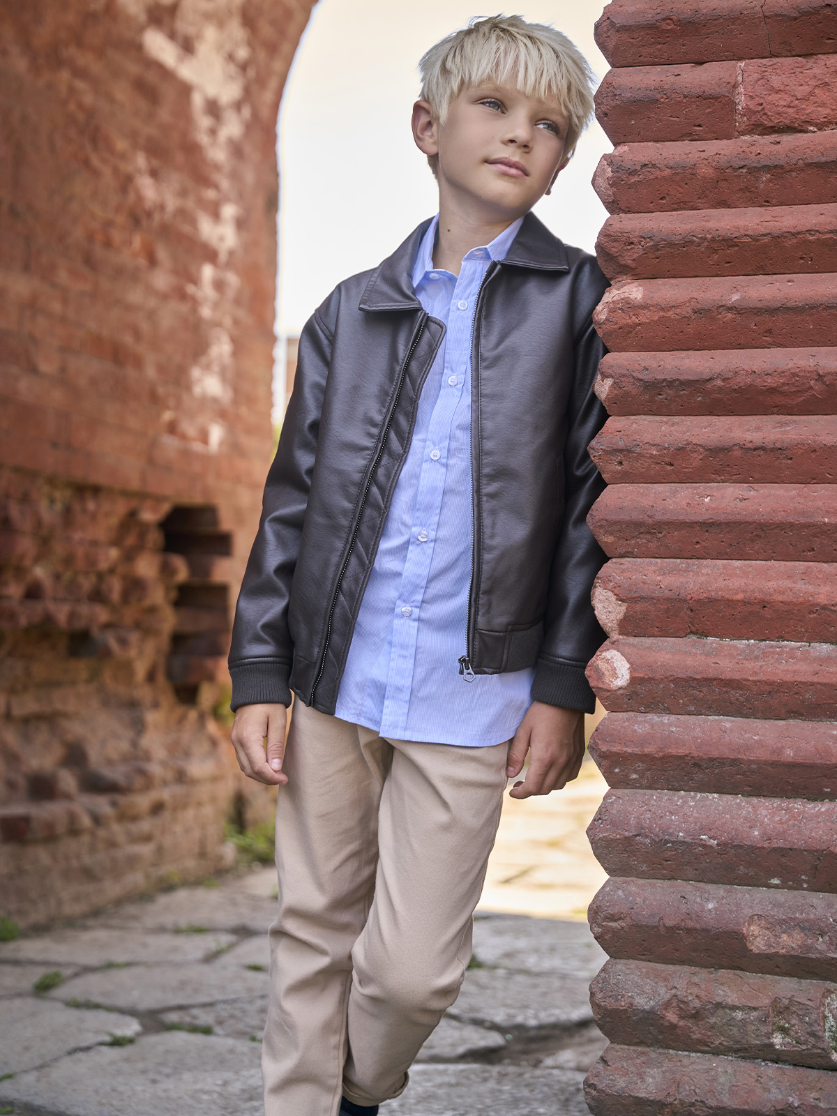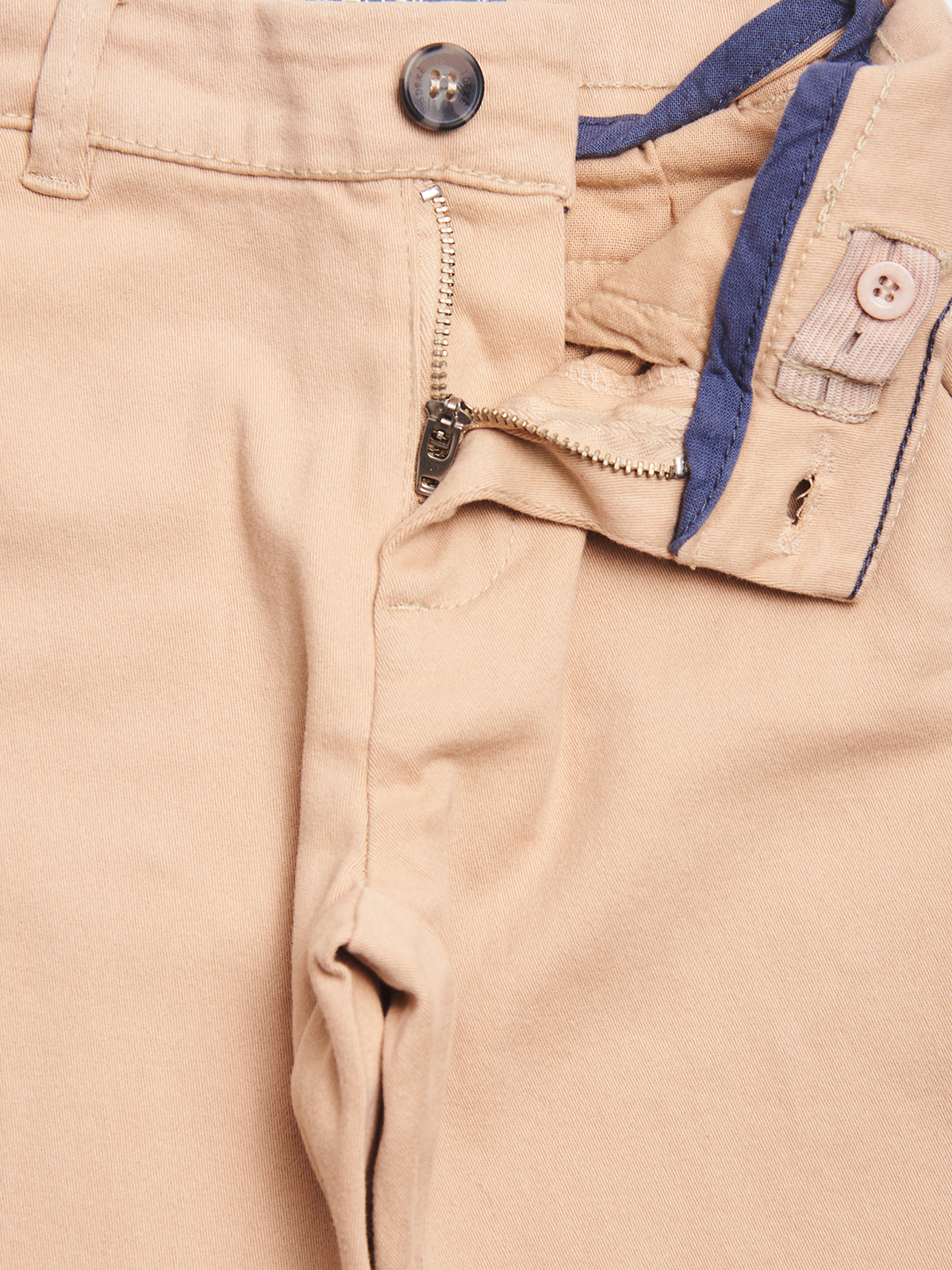 Pantaloni in morbido drill elasticizzato per garantire il massimo comfort e libertà nei movimenti. Modello chinos, linea asciutta, aperto davanti con lampo e bottone ed elastico regolabile per interno vita. Tasche davanti e dietro. Un capo dalla linea classica ed elegante, ideale per le occasioni speciali.