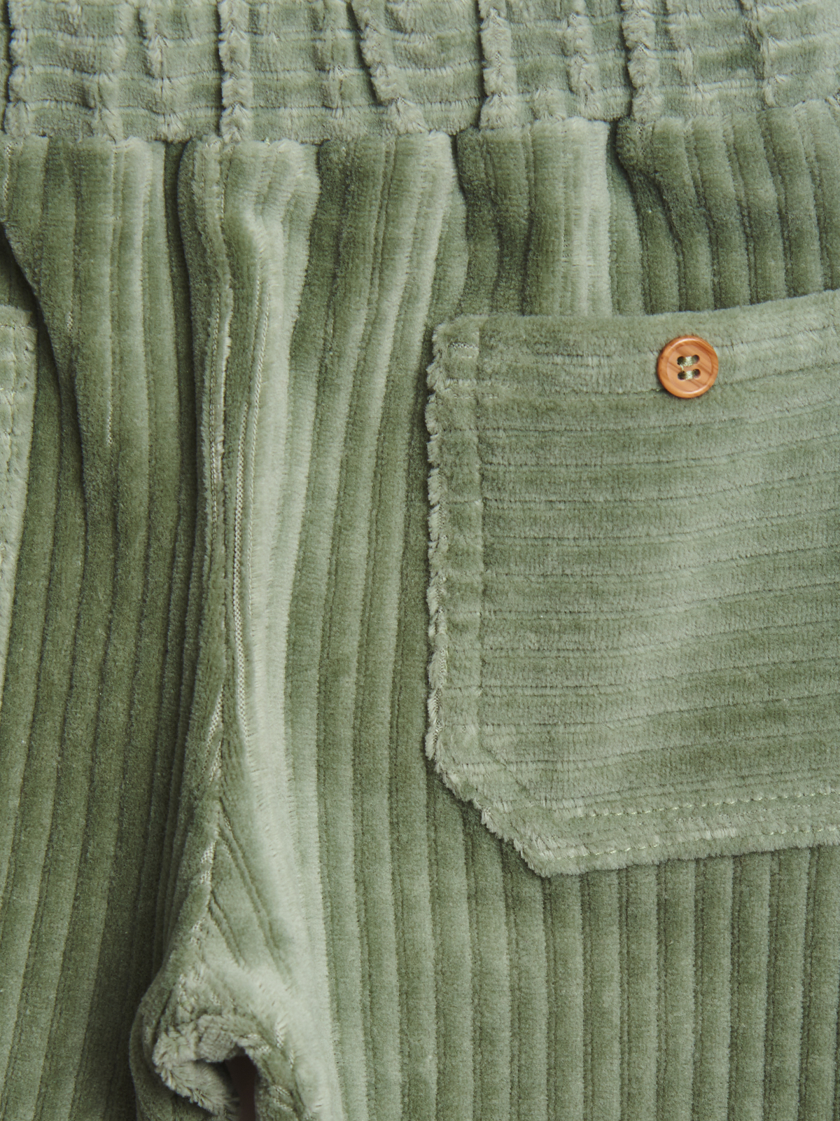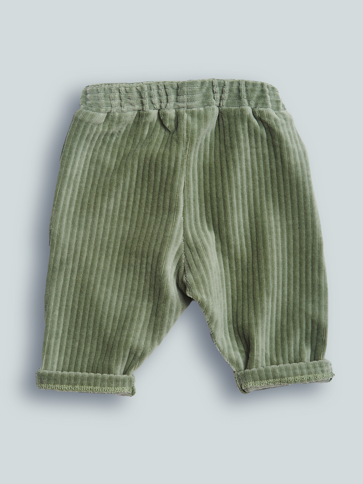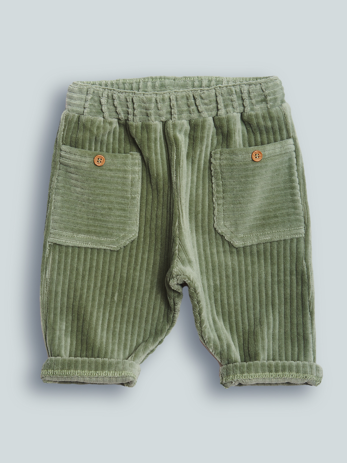 Pantaloni in morbida ciniglia a coste larga, vita elasticata. Tasche applicate sul davanti. Un capo comodo e versatile, ideale per essere sempre al passo con la moda.