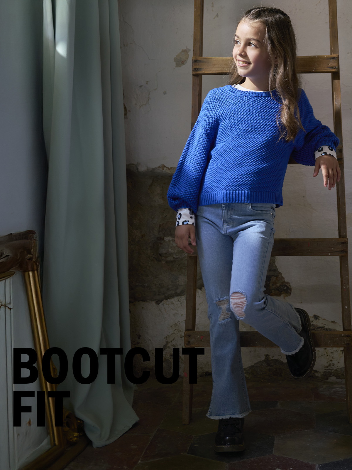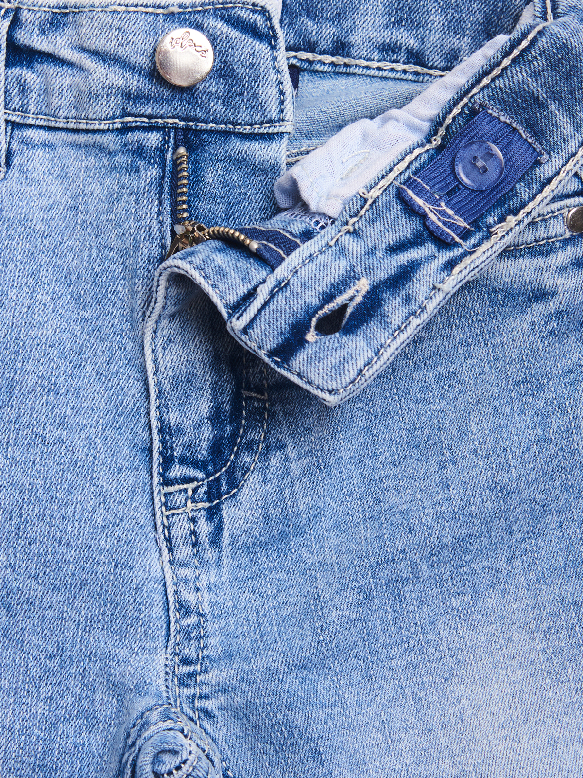 Pantaloni in denim elasticizzato modello bootcut con microstrappi sul davanti. Vita con elastico regolabile interno e apertura con zip e bottone. Un capo glam che piacerà alle mamme e alle bambine attente ai trend di stagione.