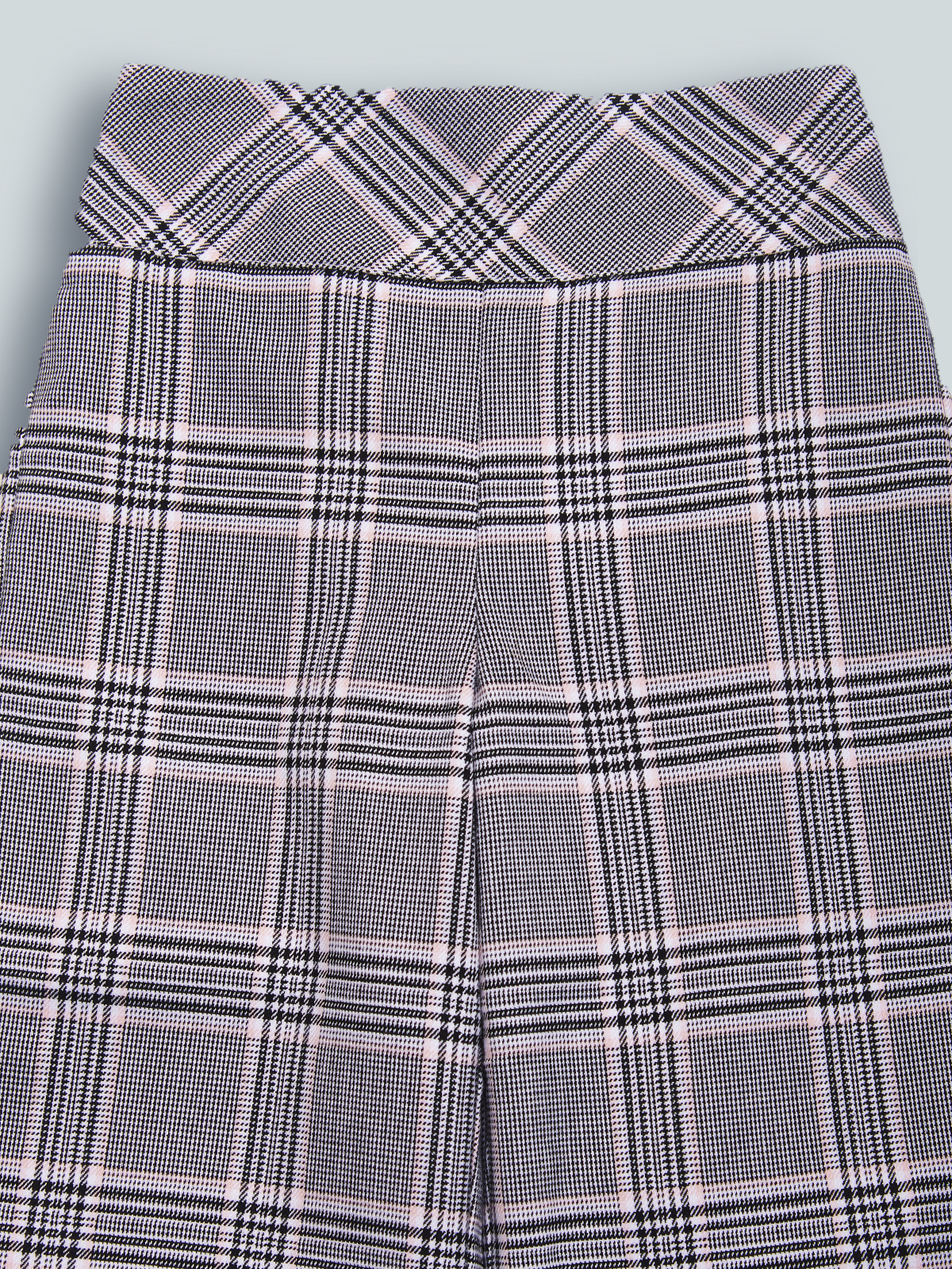 Pantaloni in Morbido tessuto navetta fantasia scozzese. Vita elasticata dietro per Maggiore comodità. Un capo Molto femminile dal look glamour.