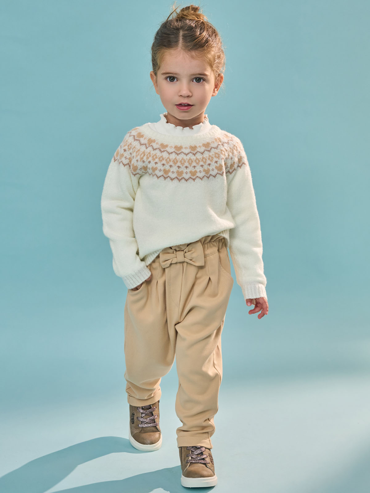 Pantaloni in morbida e calda flanella con vita elasticata per maggiore comofità. Fiocco e risvolto al fondo per ancora più femminilità. Un capo comfortevole ideale per affrontare l’inverno con stile.