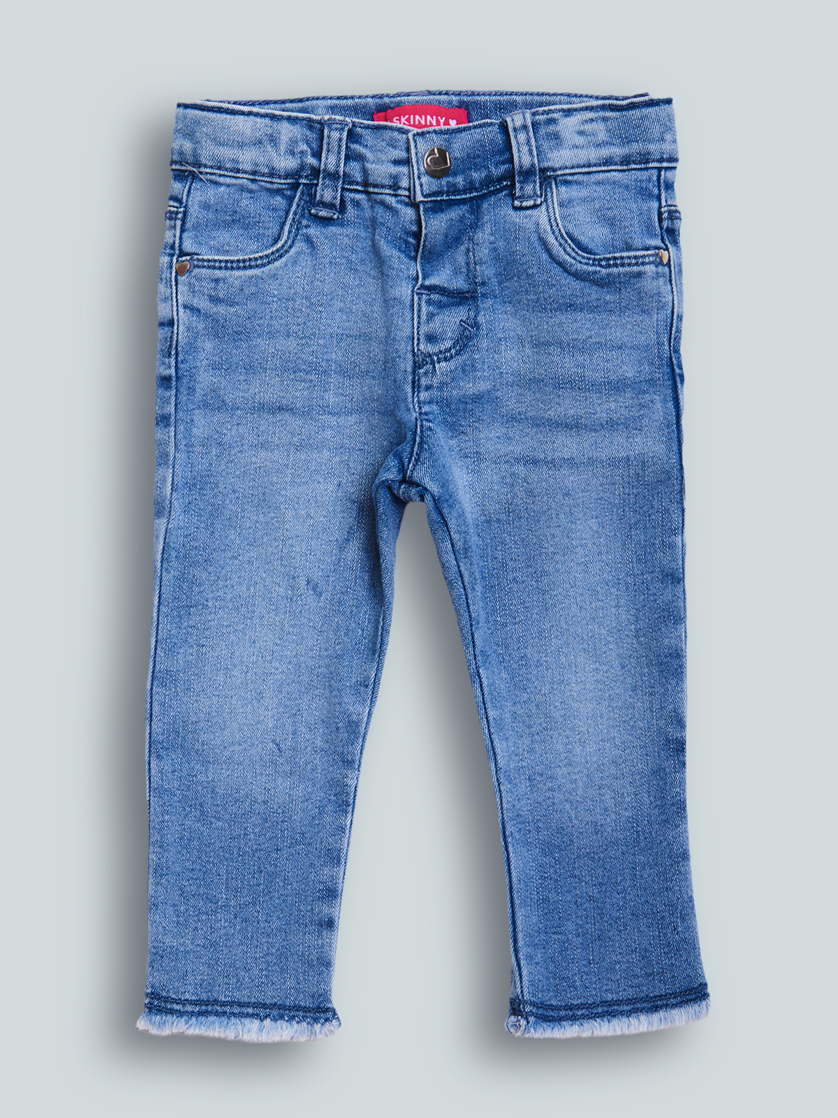 Pantaloni in Morbido denim elasticizzato con vita regolabile e apertura tramite bottone. Tasche davanti e fondo sfrangettato che donano un valore aggiunto al capo. Vestibilità skinny. Un Modello Molto femminile e al passo con la Moda, essenziale per ogni tipo di look.