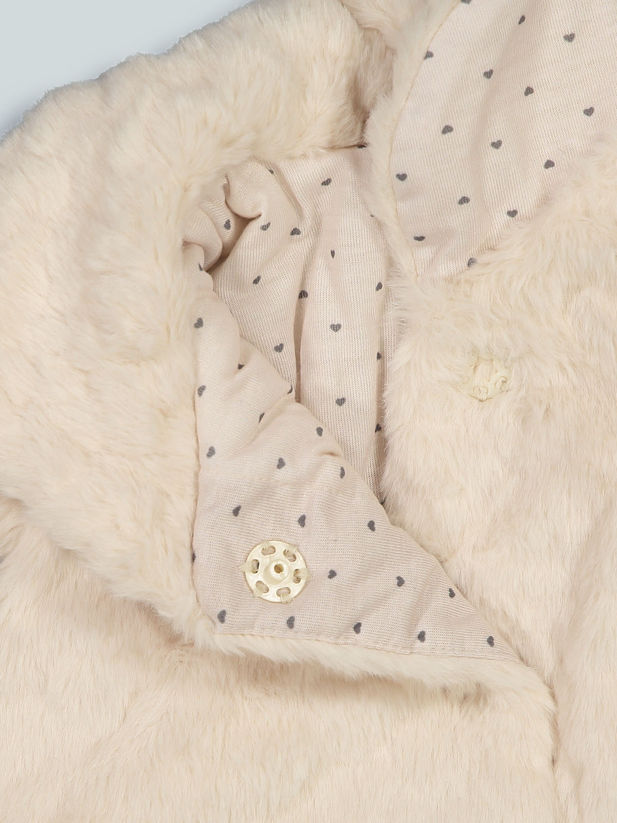 Giubbotto in peluches inciso cuori. Il modello del collo offre maggiore riparo dal freddo. Foderato internamente. Un prodotto funzionale, caldo e di tendenza, perfetto per affrontare la stagione invernale.