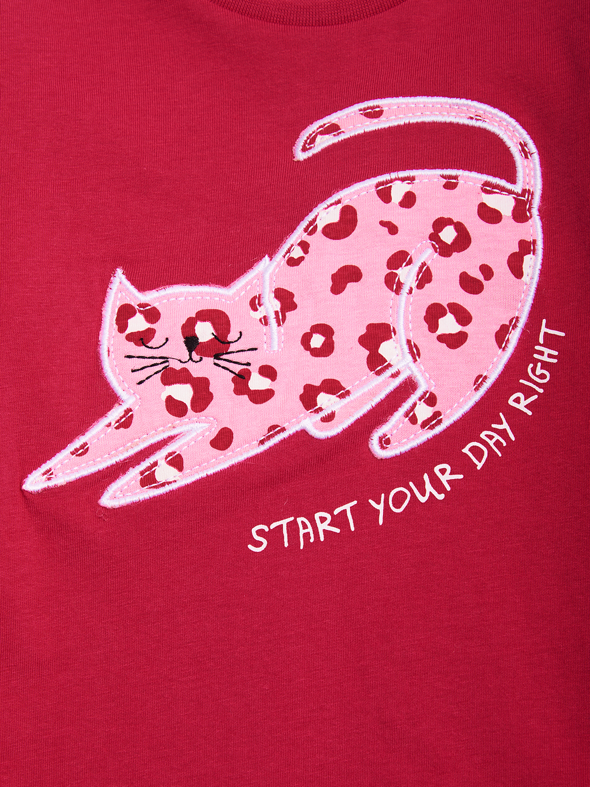 Pigiama due pezzi. Tshirt manica lunga in morbido cotone con gatto maculato sul davanti. Pantaloni in morbido cotone fantasia maculata con vita elasticata per maggiore comodità. Un capo morbido e confortevole per fare dolci sogni.