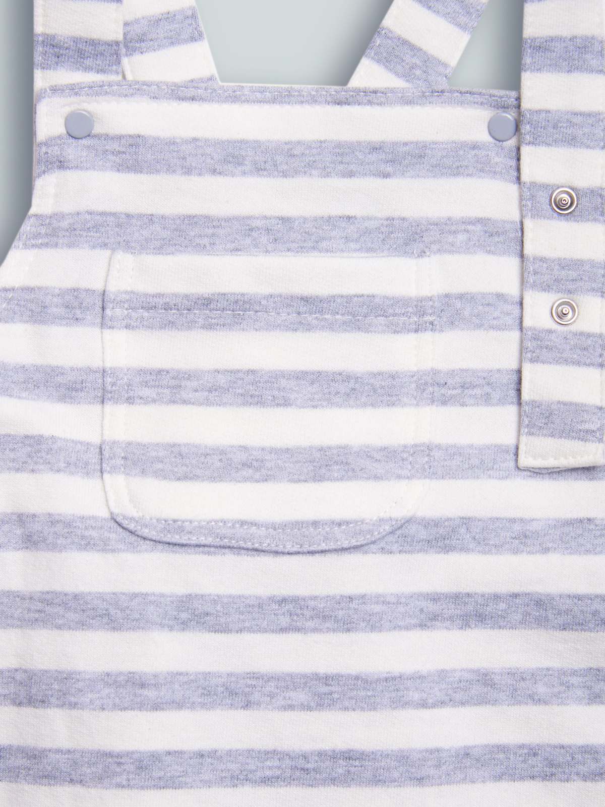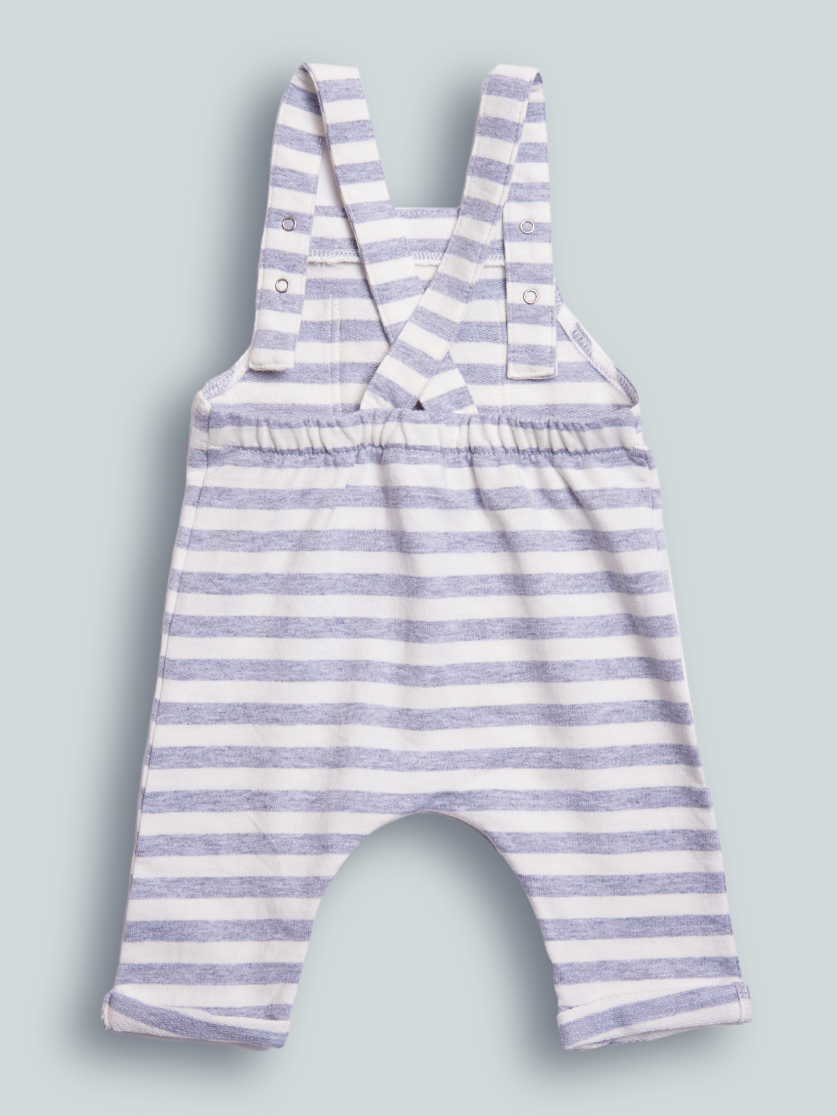 Salopette in Morbida felpa leggera rigato tinto filo. Elastico per vita sul retro rende la vestibilità più confortevole. Le bretelle sono regolabili, Mediante due bottoni a pressione, per garantire l’indosso perfetto. Ottima soluzione per avere comodità e tendenza in un solo capo, perfetta da indossare sopra una t-shirt.