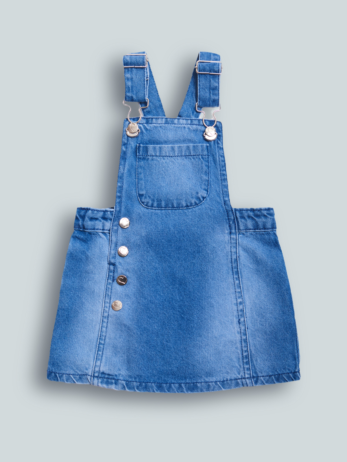 Salopette gonna in Morbido denim. Comode e pratiche bretelle con fibbie che rendono possibile la regolazione per una vestibilità adatta ad ogni bambina. Tasca davanti per Maggiore femminilità. Un capo decisamente sfizioso che non perde di praticità, ideale da abbinare alla tshirt e ai collant della collezione.