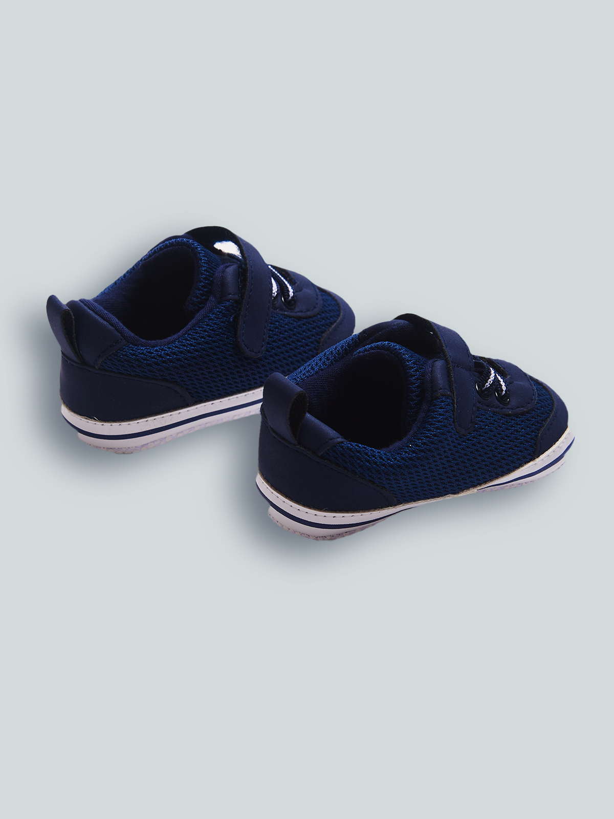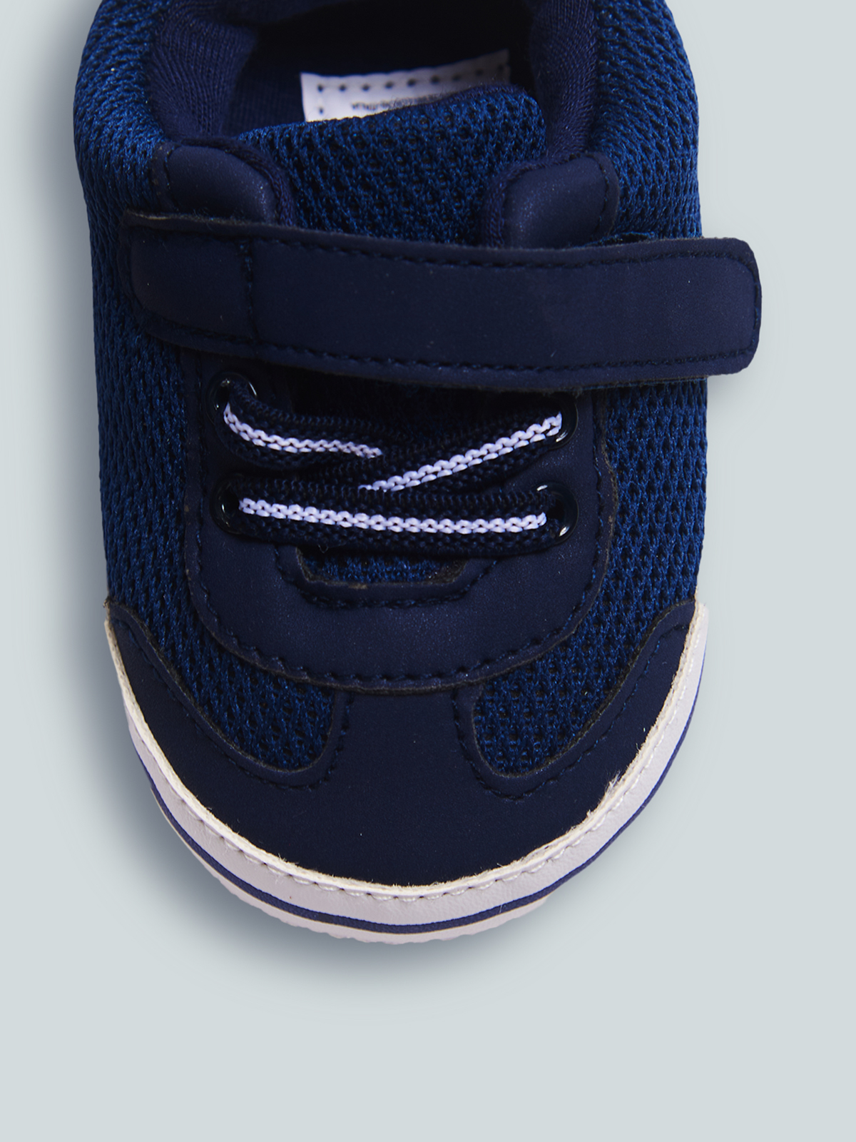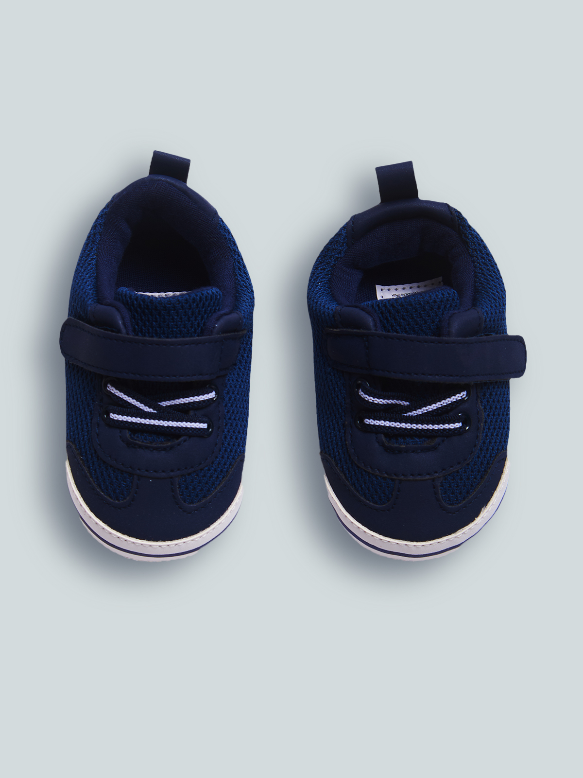 Sneakers sportive per neonato. Scarpa con fodera interna e soletta in cotone traspirabile. Chiusura con velcro e lacci elasticizzati che garantiscono una migliore vestibilità e semplificano la calzata. Questo articolo è spedito all’interno di una confezione della linea Newborn, ideale come regalo.