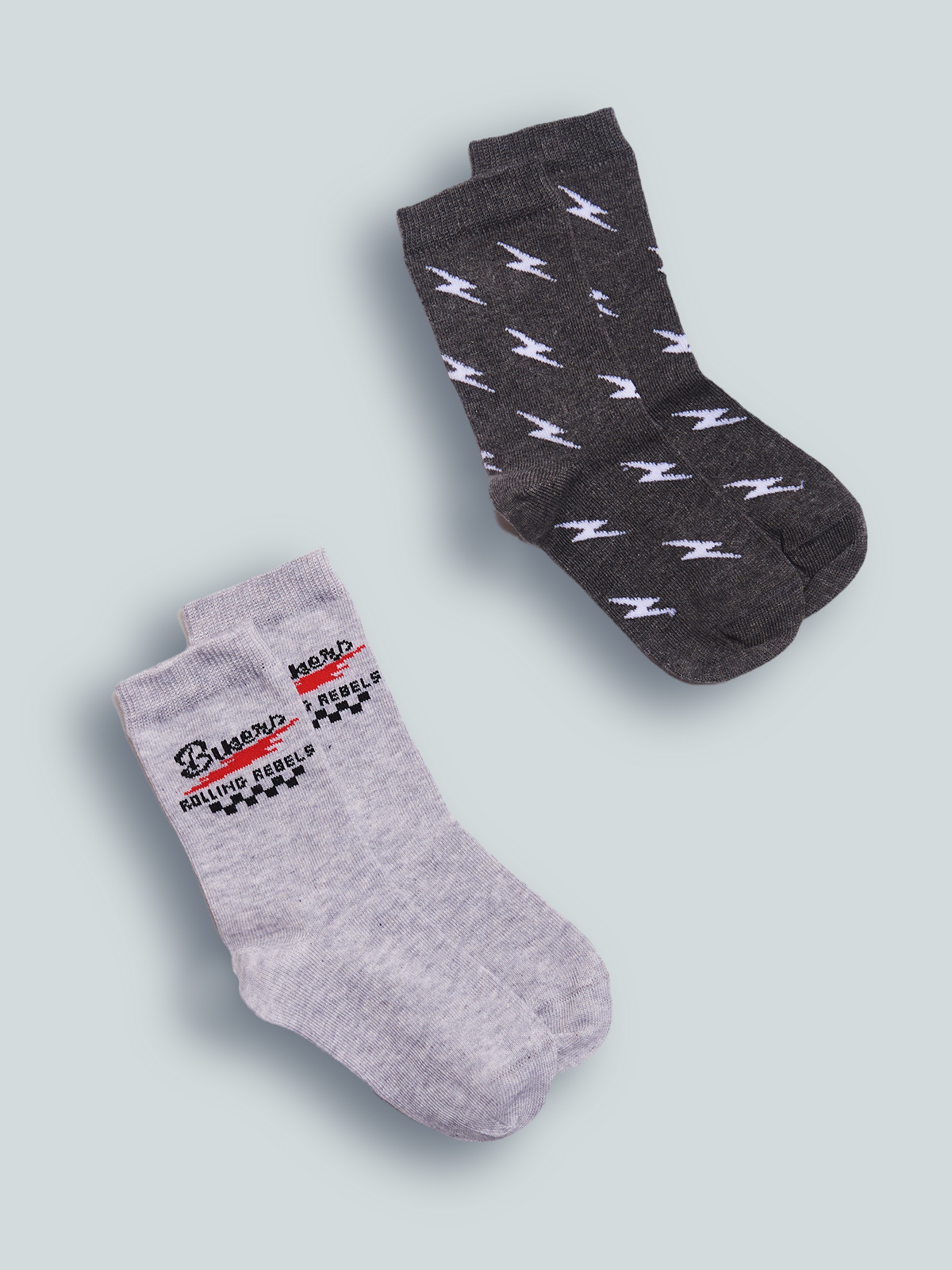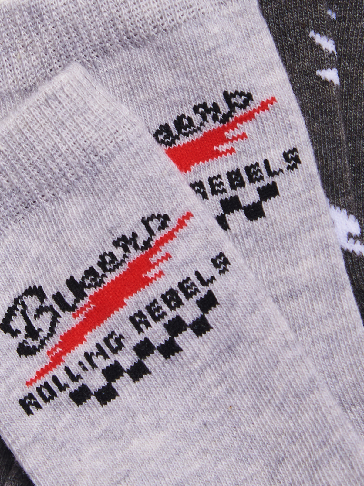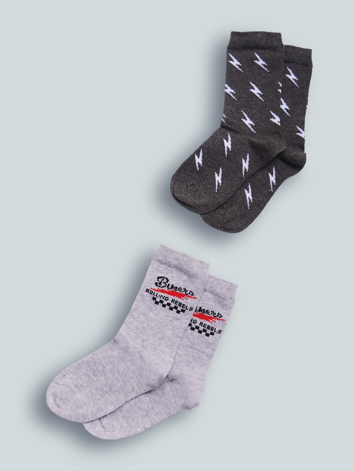 Set due paia di calzini in Morbido Misto cotone. Melange scuro in fantasia e Melange chiaro con scritta, due proposte che si abbinano bene a qualsiasi look.