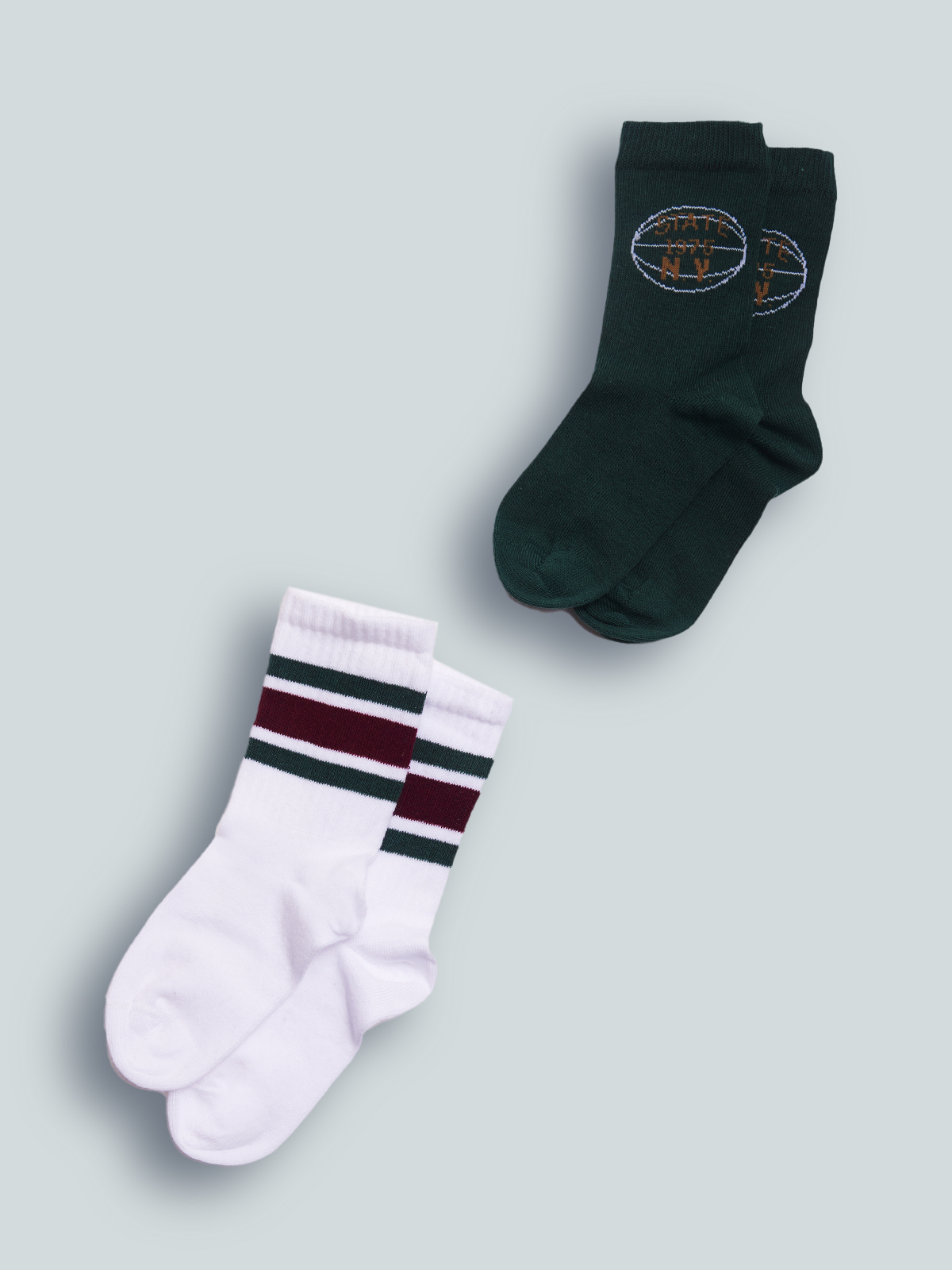 Set due paia di calzini in Morbido Misto cotone. Una a costa con Motivo di righe, l’altra con pallone da basket. Ideali da abbinare a qualsiasi look.
