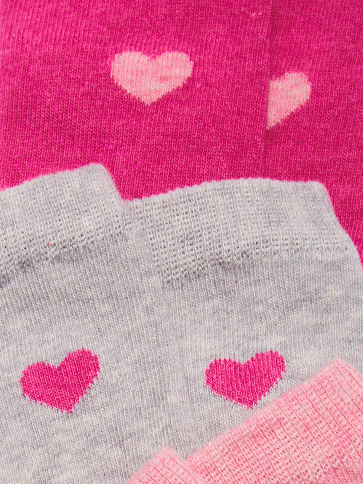 Set tre paia di calzini in Morbida Maglia Misto cotone Melange con cuoricino sul lato. Ideali da indossare a scuola e nel tempo libero.