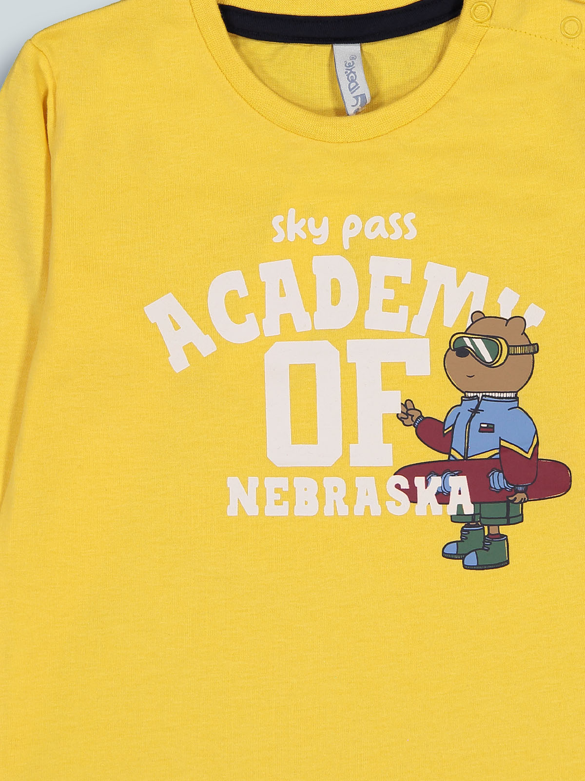 Tshirt manica lunga girocollo in caldo cotone, pratica apertura con bottoncini a pressione su spalla. Stampa sul davanti. Una tshirt colorata, ideale per la scuola e il tempo libero.